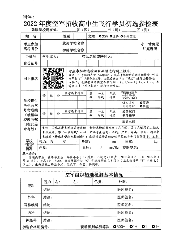 关于2022年度空军在湖南省招收高中生飞行学员工作安排