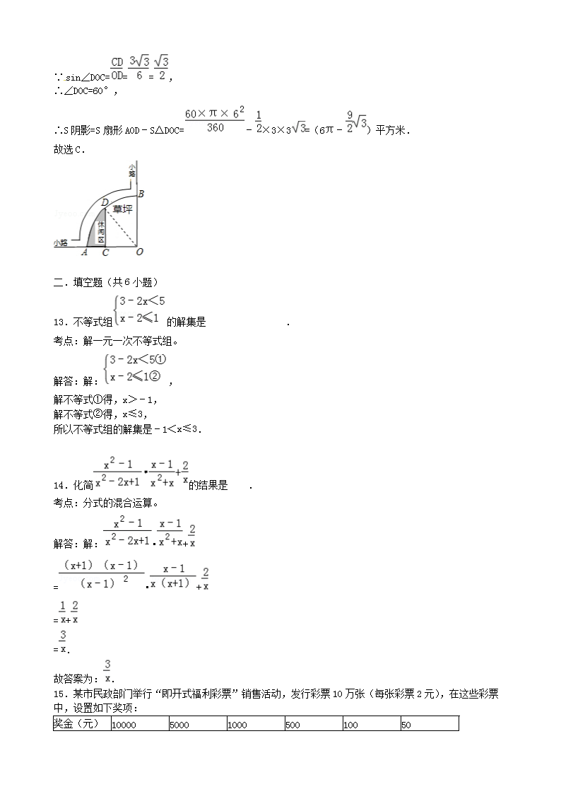 【文档预览】 无忧考网整理发布2012年山西省太原中考数学真题及答案(Word版),前五页预览如下: