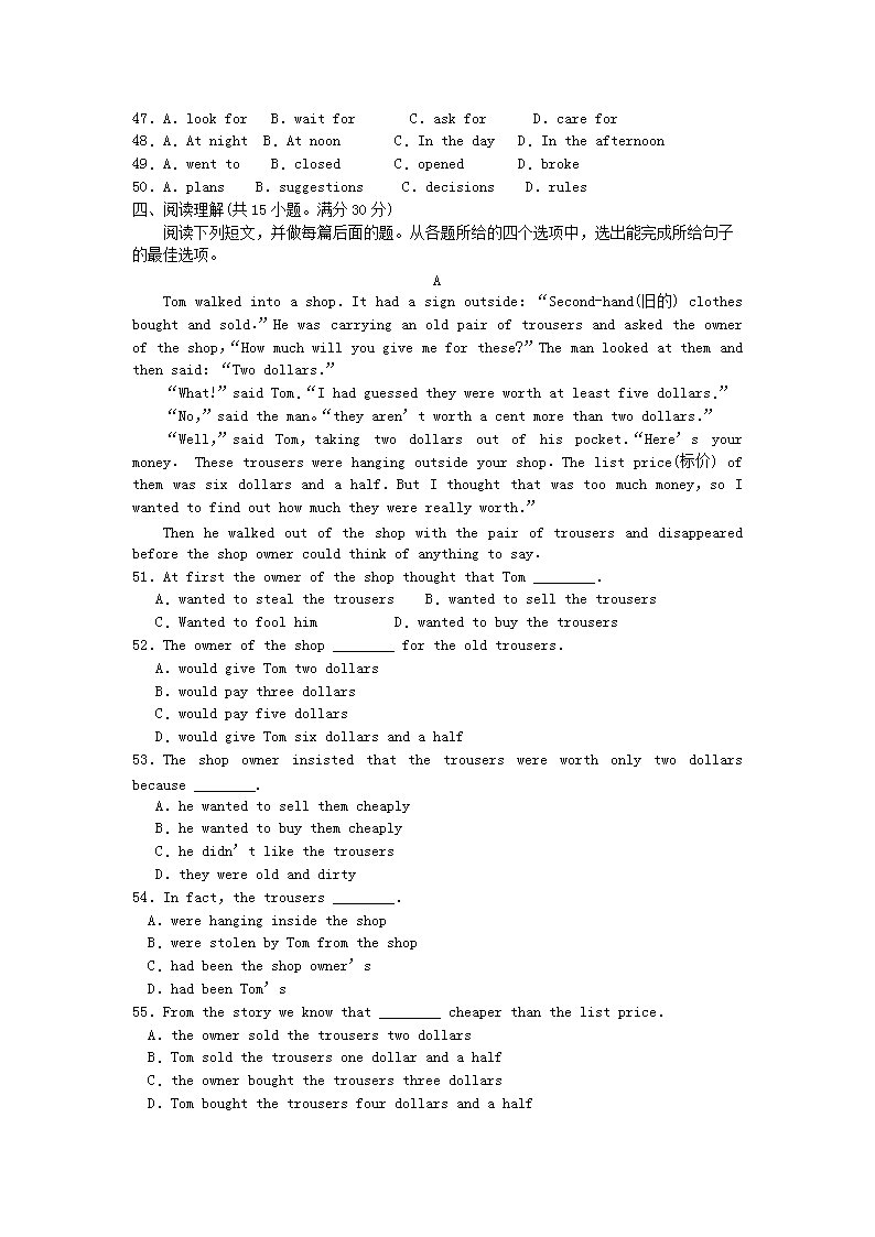 【文档预览】 无忧考网整理发布2008年宁夏银川中考英语真题及答案(Word版),前五页预览如下: