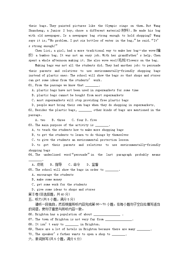 【文档预览】 无忧考网整理发布2008年宁夏中卫中考英语真题及答案(Word版),前五页预览如下: