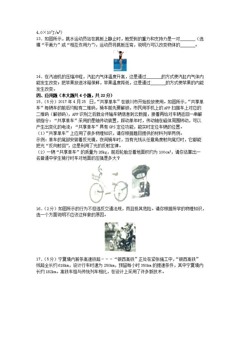 【文档预览】 无忧考网整理发布2017年宁夏中卫中考物理真题及答案(Word版),前五页预览如下: