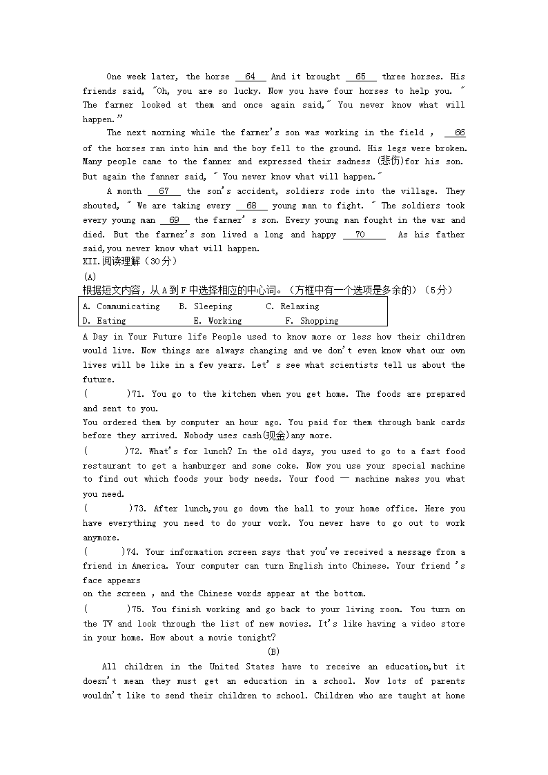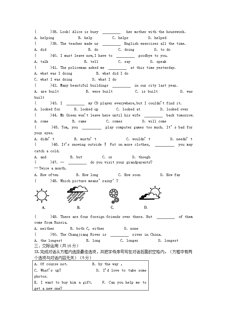 【文档预览】 无忧考网整理发布2009年吉林松原中考英语真题及答案(Word版),前五页预览如下: