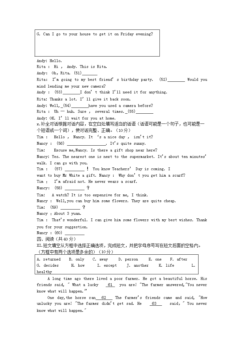【文档名称】 2009年吉林松原中考英语真题及答案(Word版).doc