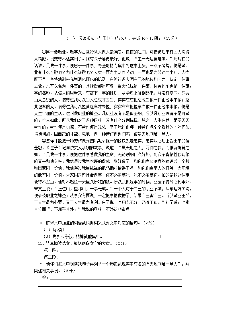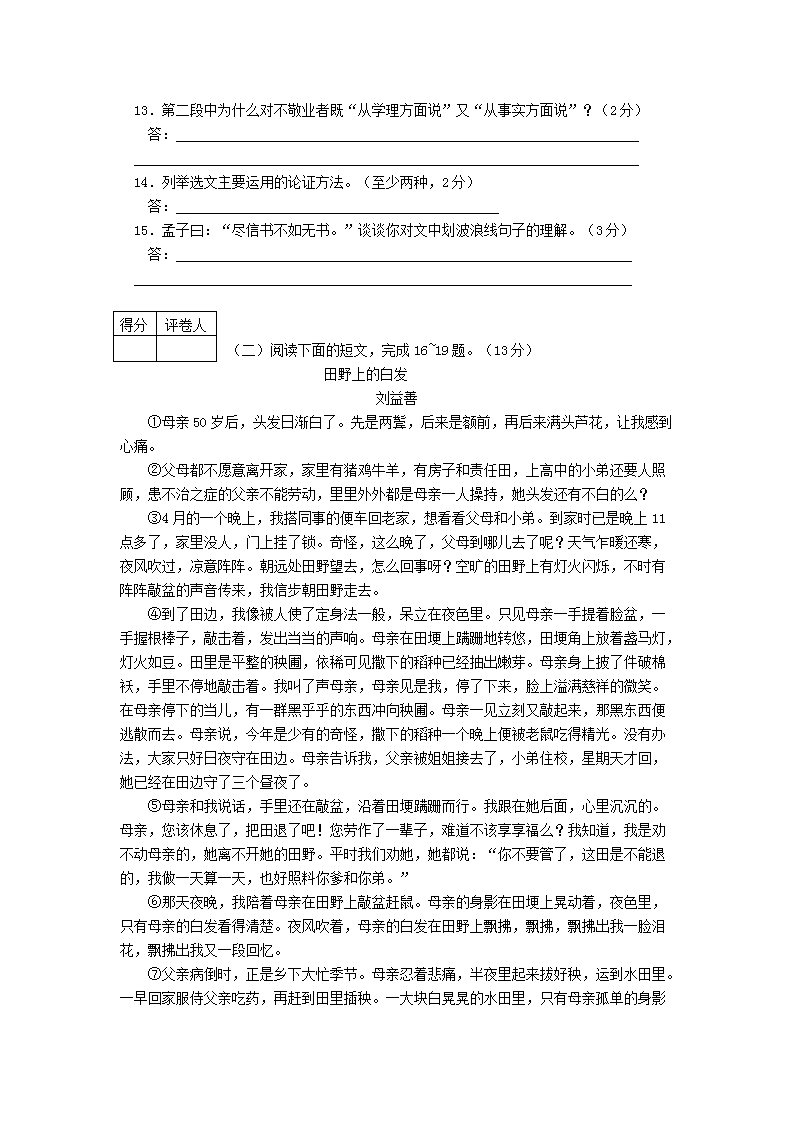 【文档名称】 2009年四川省达州市中考语文真题及答案(Word版).doc