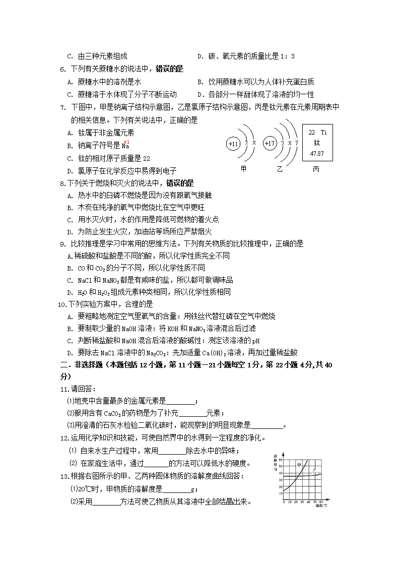 【文档名称】 2009年吉林白城中考化学真题及答案(Word版).doc