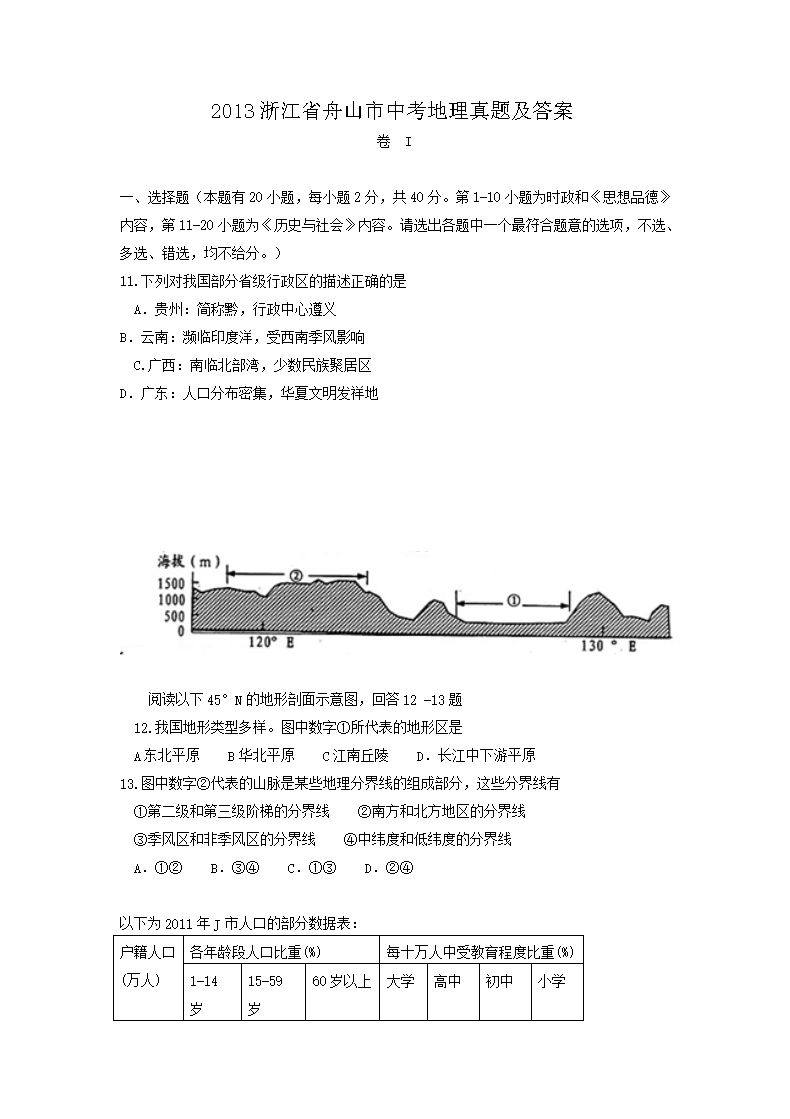 【文档预览】 无忧考网整理发布2013浙江省舟山市中考地理真题及答案(Word版),前五页预览如下: