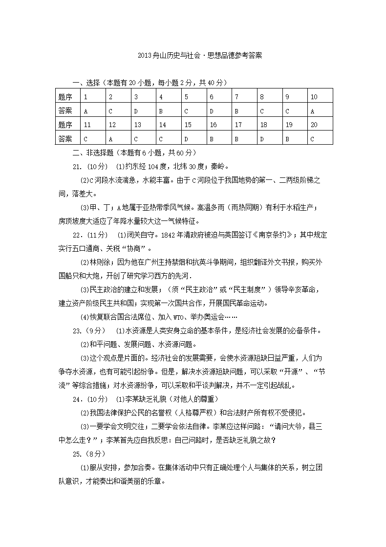 【文档名称】 2013浙江省舟山市中考地理真题及答案(Word版).doc