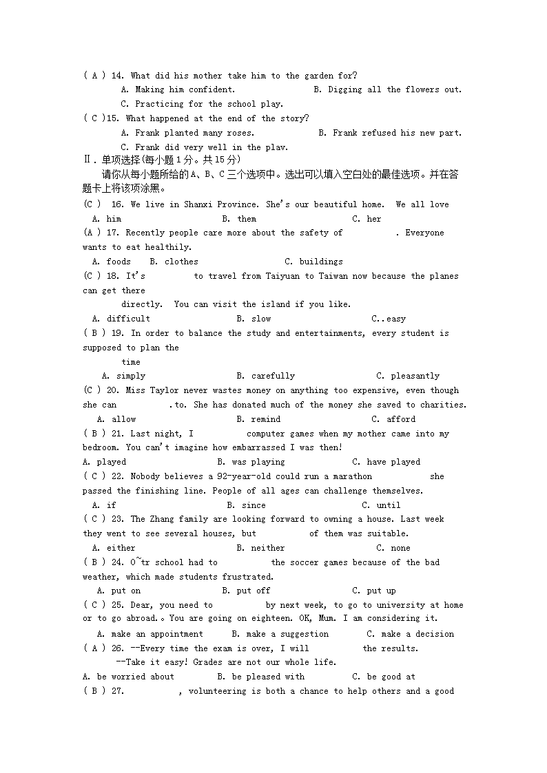 【文档名称】 2012年山西省阳泉中考英语真题及答案(Word版).doc