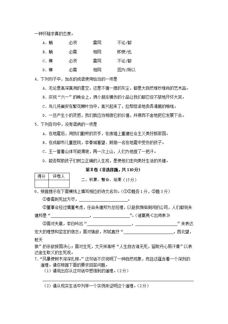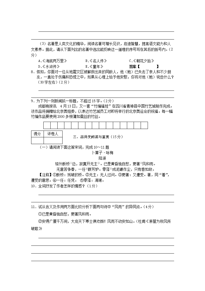 【文档名称】 2008年四川省眉山市中考语文真题及答案(Word版).doc