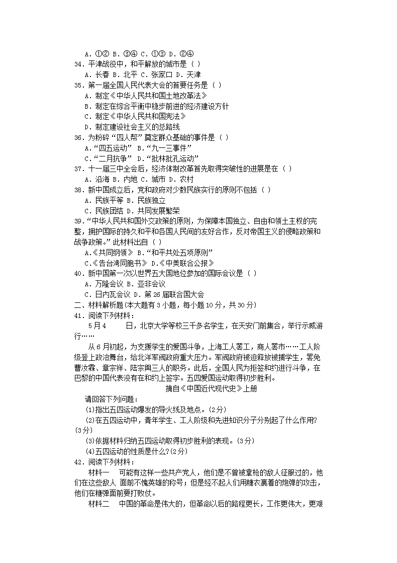 【文档名称】 2003年福建普通高中会考历史真题及答案(Word版).doc