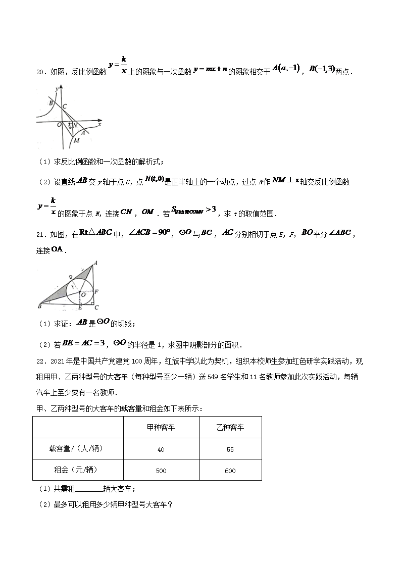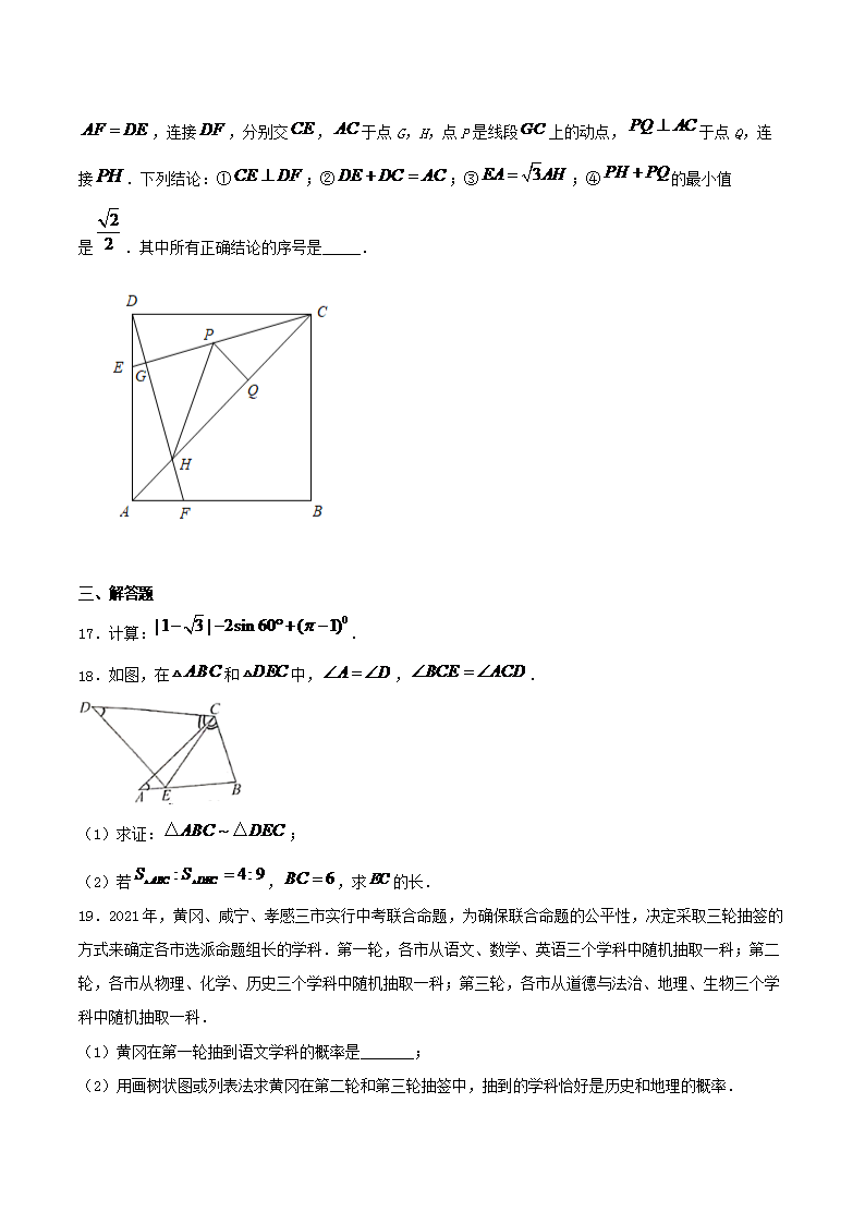 【文档名称】 2021年湖北省咸宁市中考数学真题及答案(Word版).doc