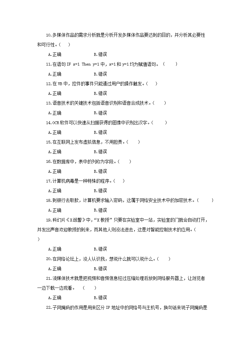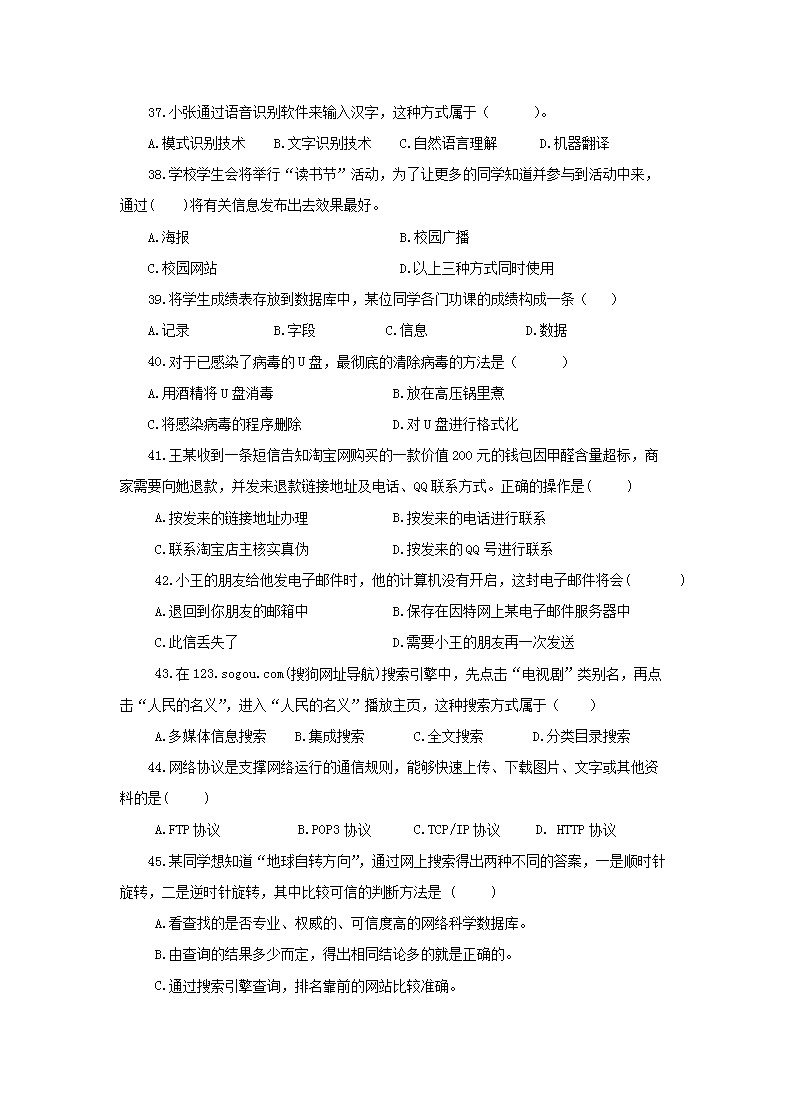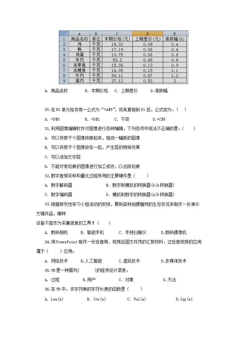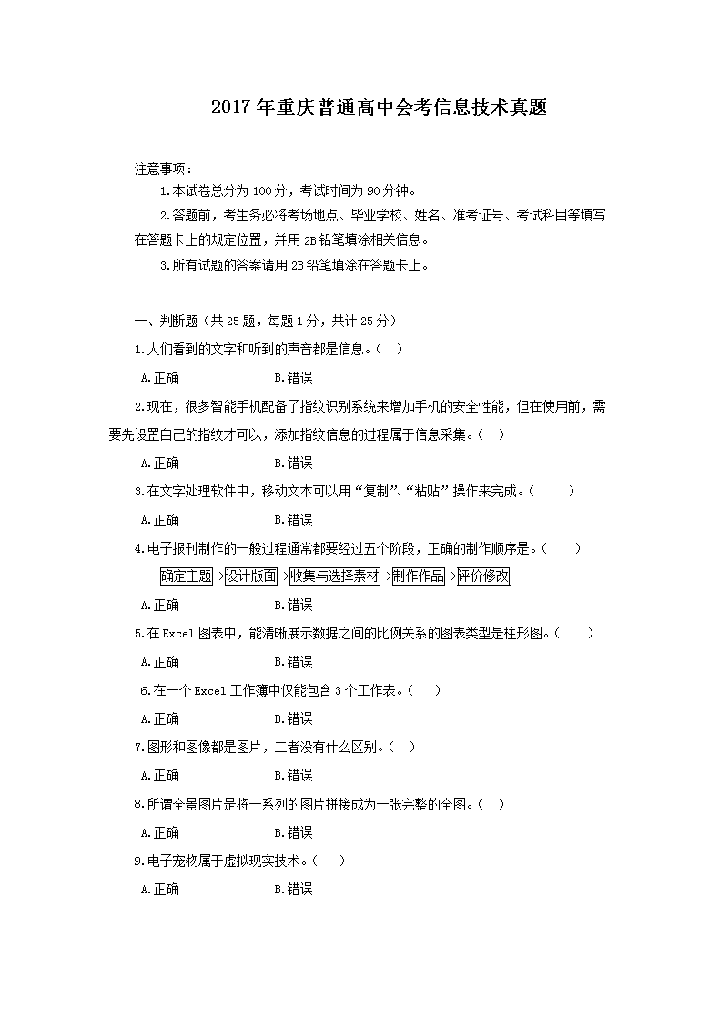 【文档名称】 2017年重庆普通高中会考信息技术真题(Word版).doc