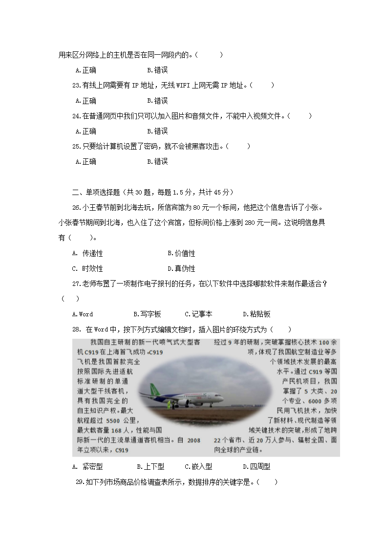【文档预览】 无忧考网整理发布2017年重庆普通高中会考信息技术真题(Word版),前五页预览如下: