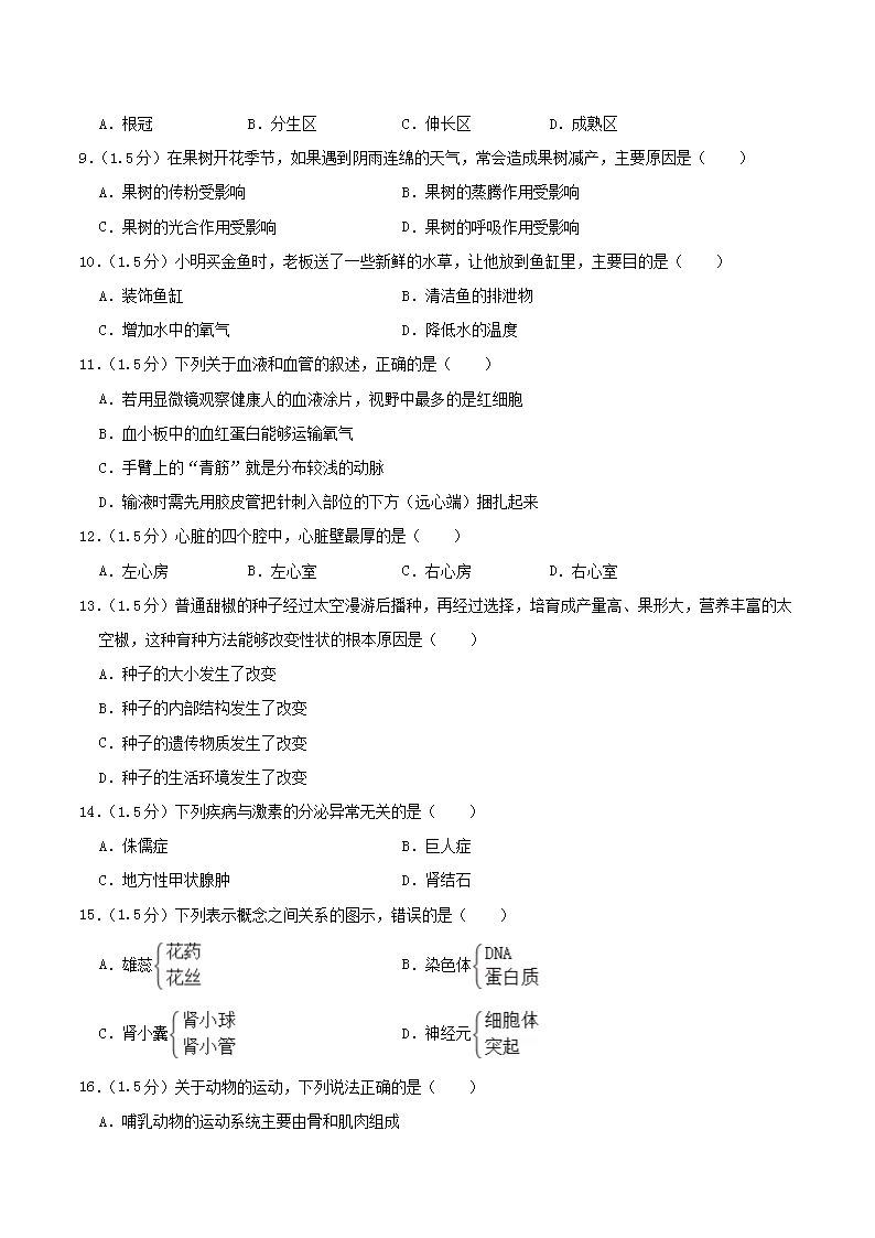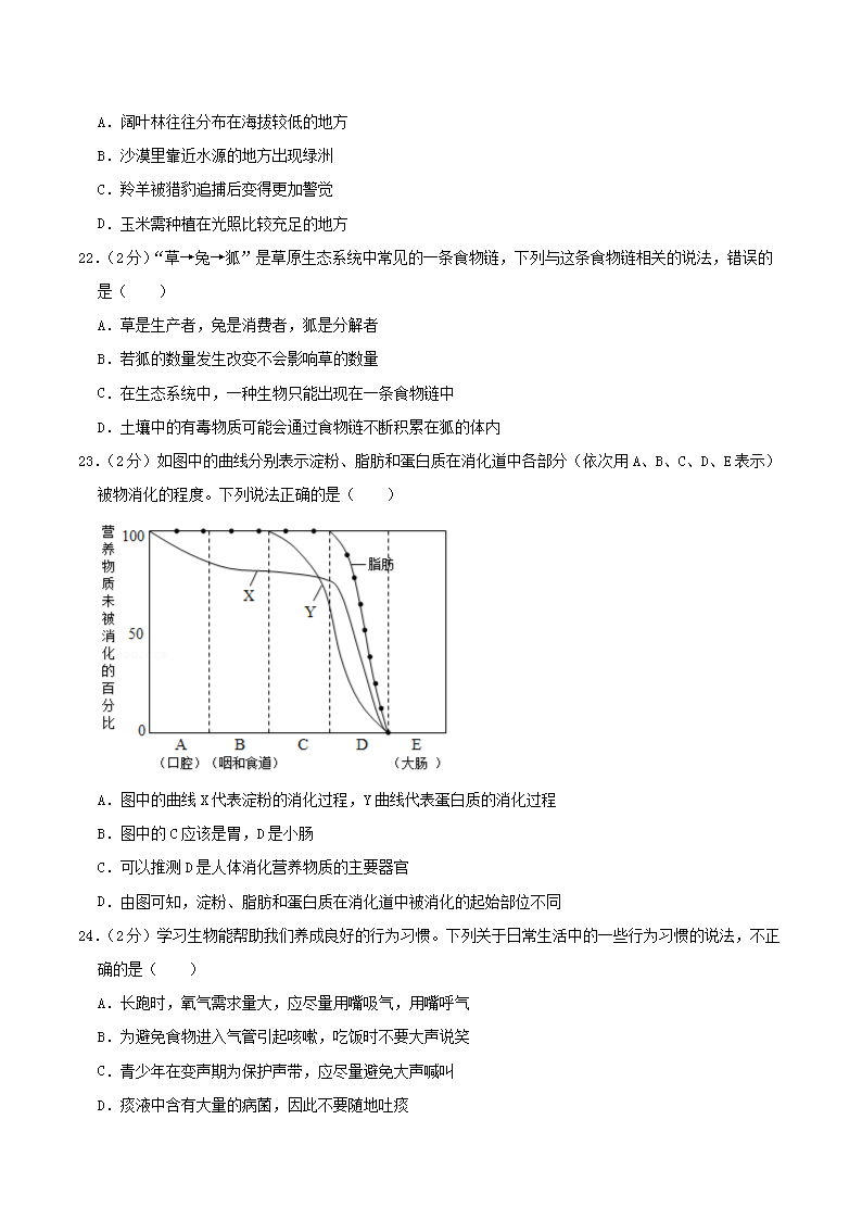 【文档名称】 2021年湖北省咸宁市中考生物真题及答案(Word版).doc