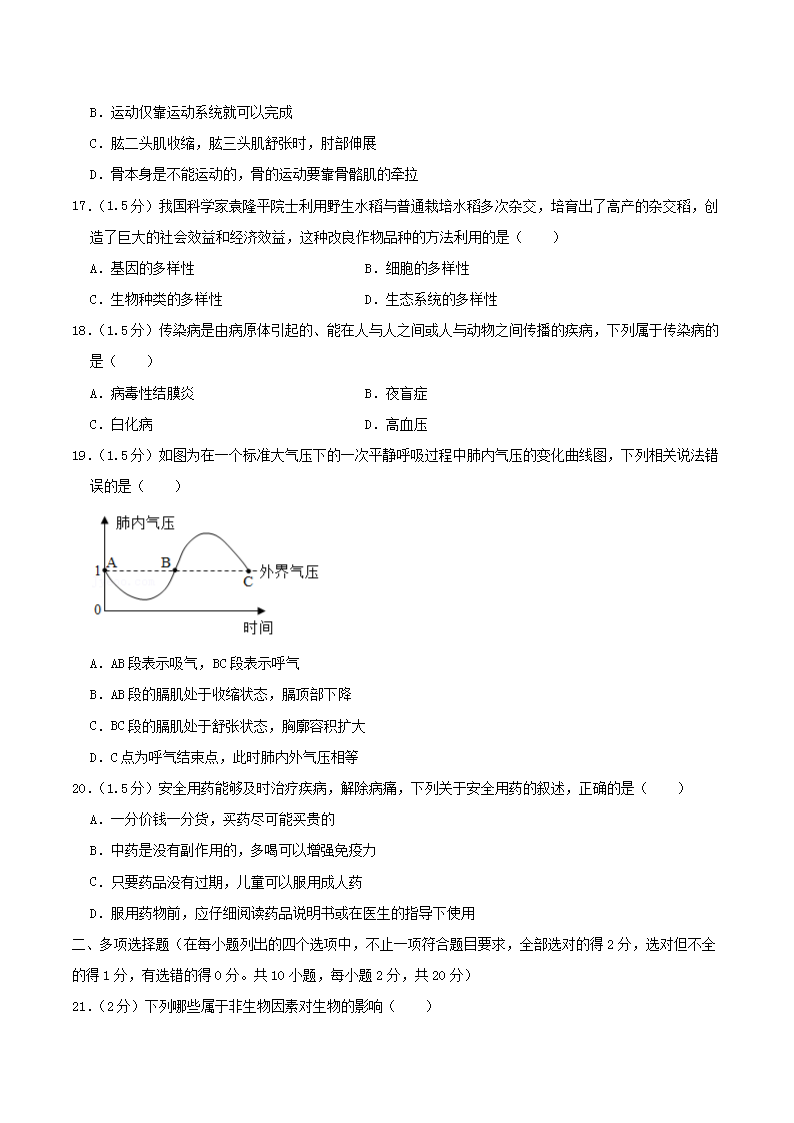 【文档预览】 无忧考网整理发布2021年湖北省咸宁市中考生物真题及答案(Word版),前五页预览如下: