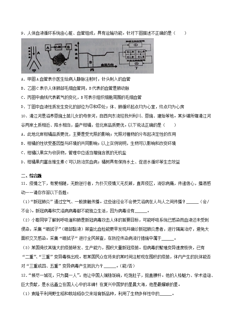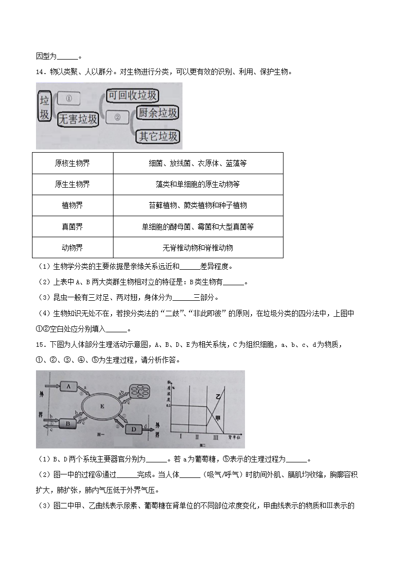 【文档名称】 2021年湖北省恩施州中考生物真题及答案(Word版).doc