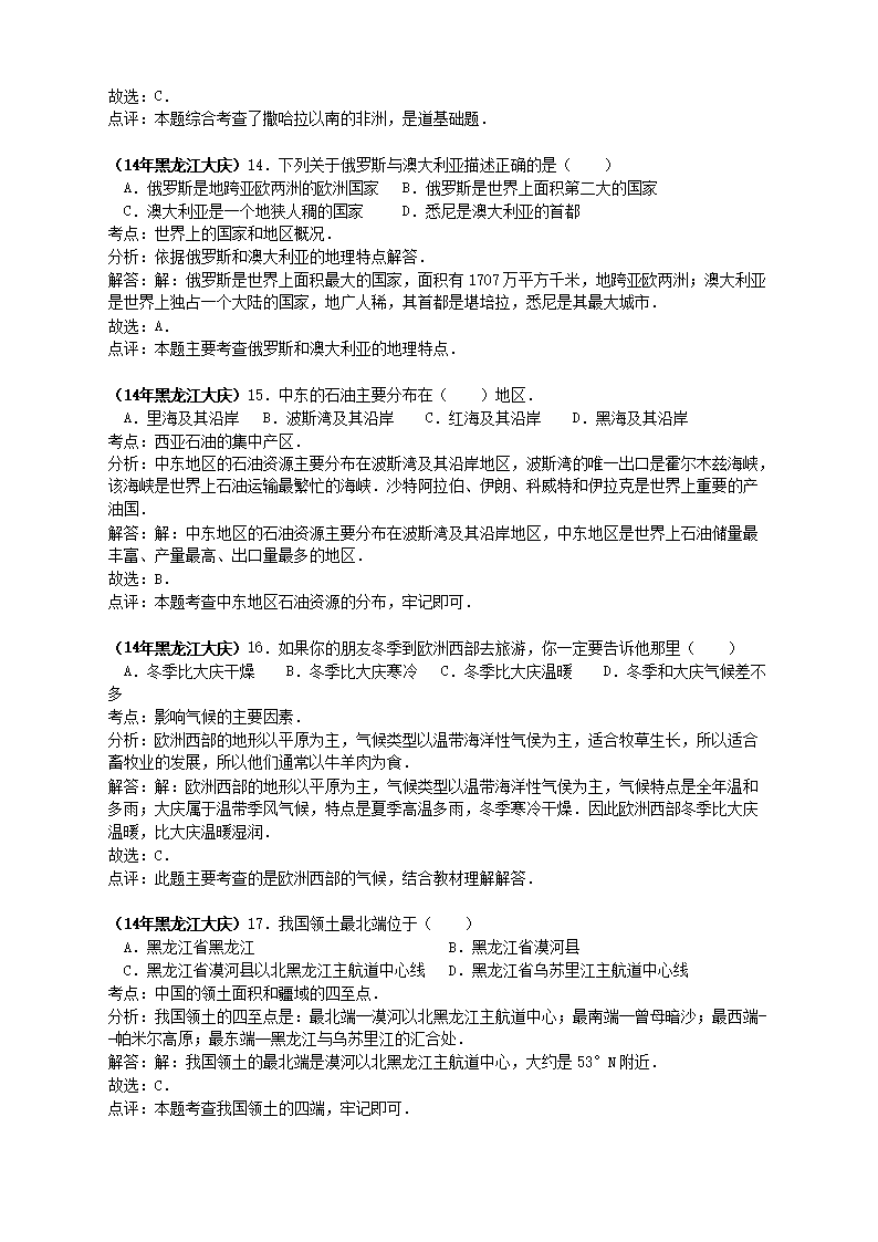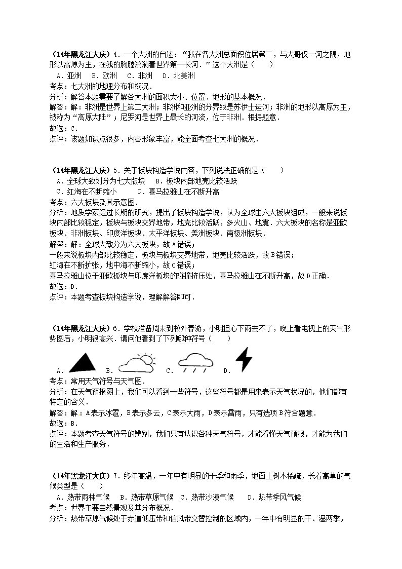 【文档名称】 2014年黑龙江大庆中考地理真题及答案(Word版).doc
