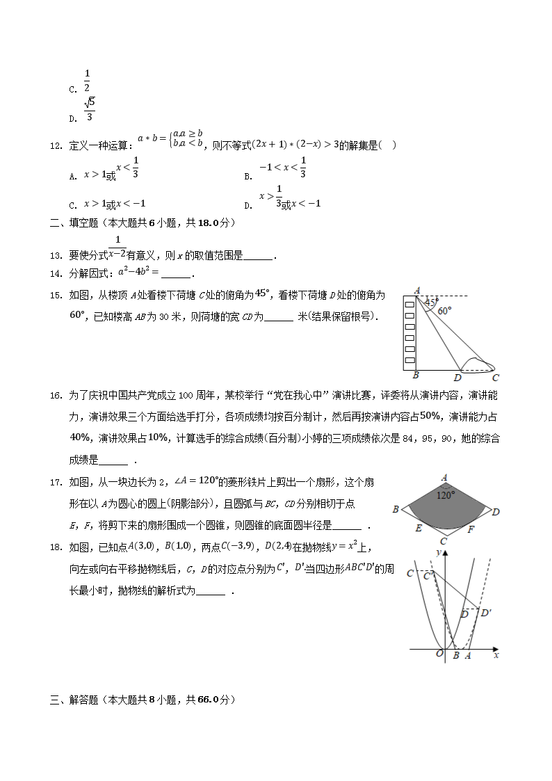 【文档预览】 无忧考网整理发布2021年广西钦州市中考数学真题及答案(Word版),前五页预览如下:
