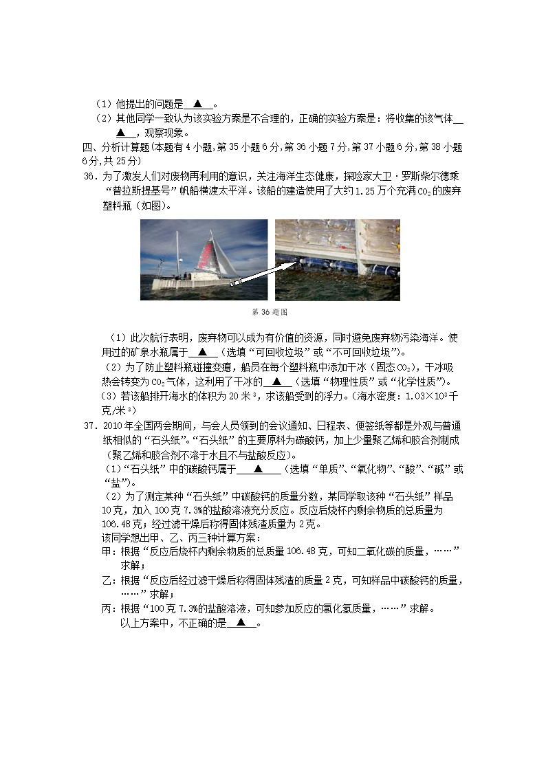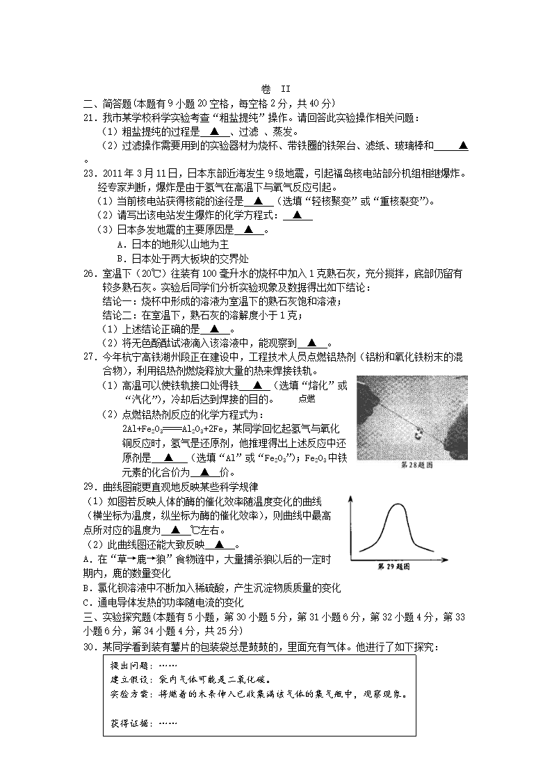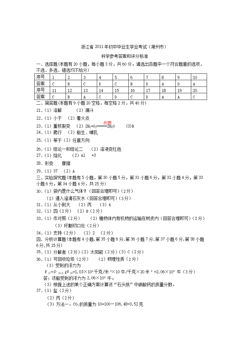 【文档名称】 2011浙江省湖州市中考化学真题及答案(Word版).doc