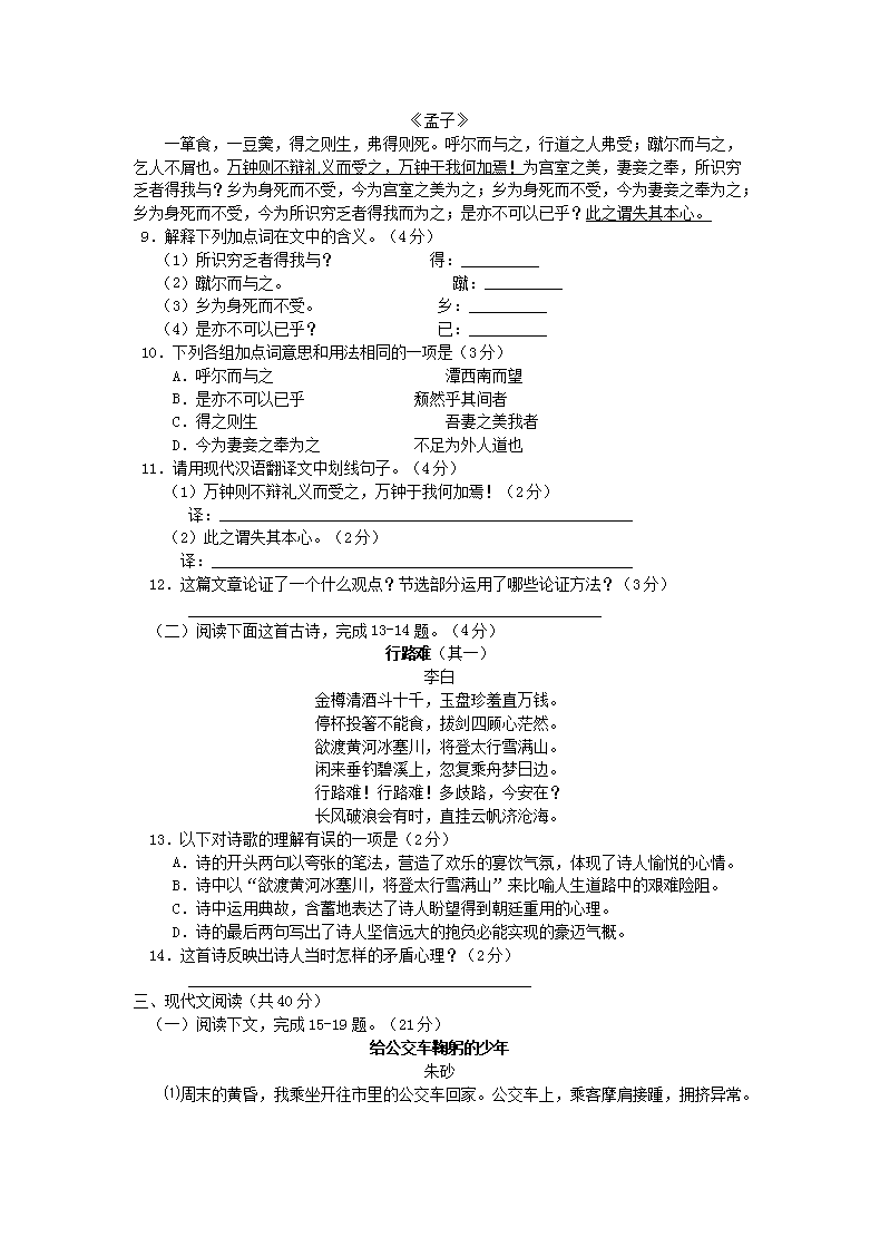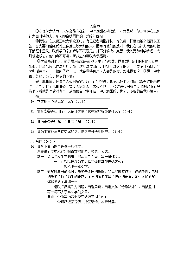 【文档预览】 无忧考网整理发布2010年新疆兵团中考语文真题及答案(Word版),前五页预览如下: