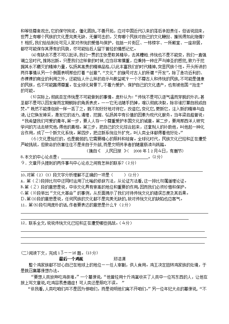 【文档名称】 2009年湖南省常德市中考语文真题及答案(Word版).doc