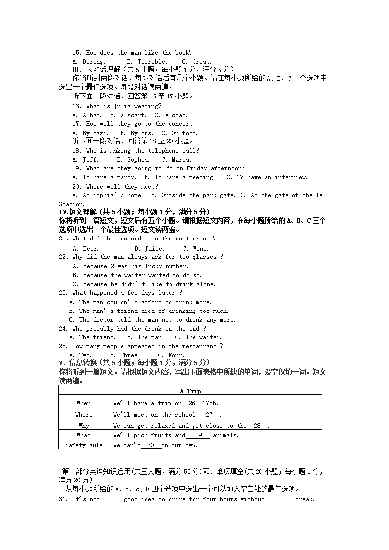 【文档预览】 无忧考网整理发布2011年安徽铜陵中考英语真题及答案(Word版),前五页预览如下: