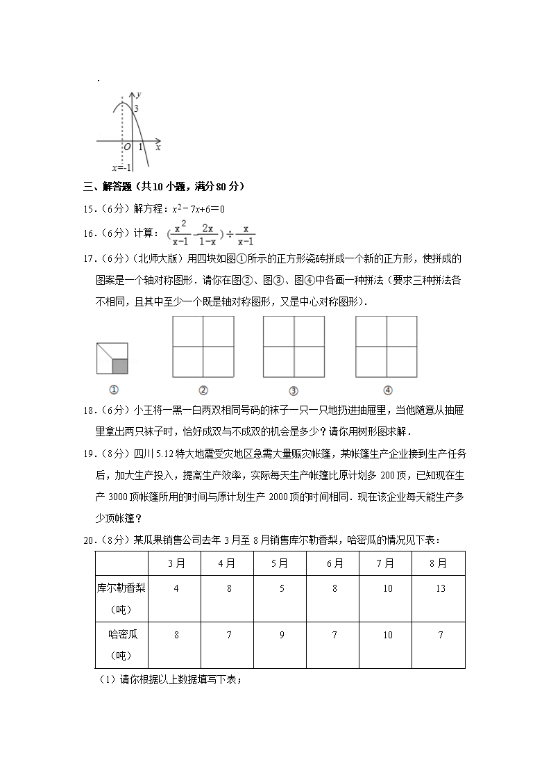 【文档预览】 无忧考网整理发布2010年新疆兵团中考数学真题及答案(Word版),前五页预览如下: