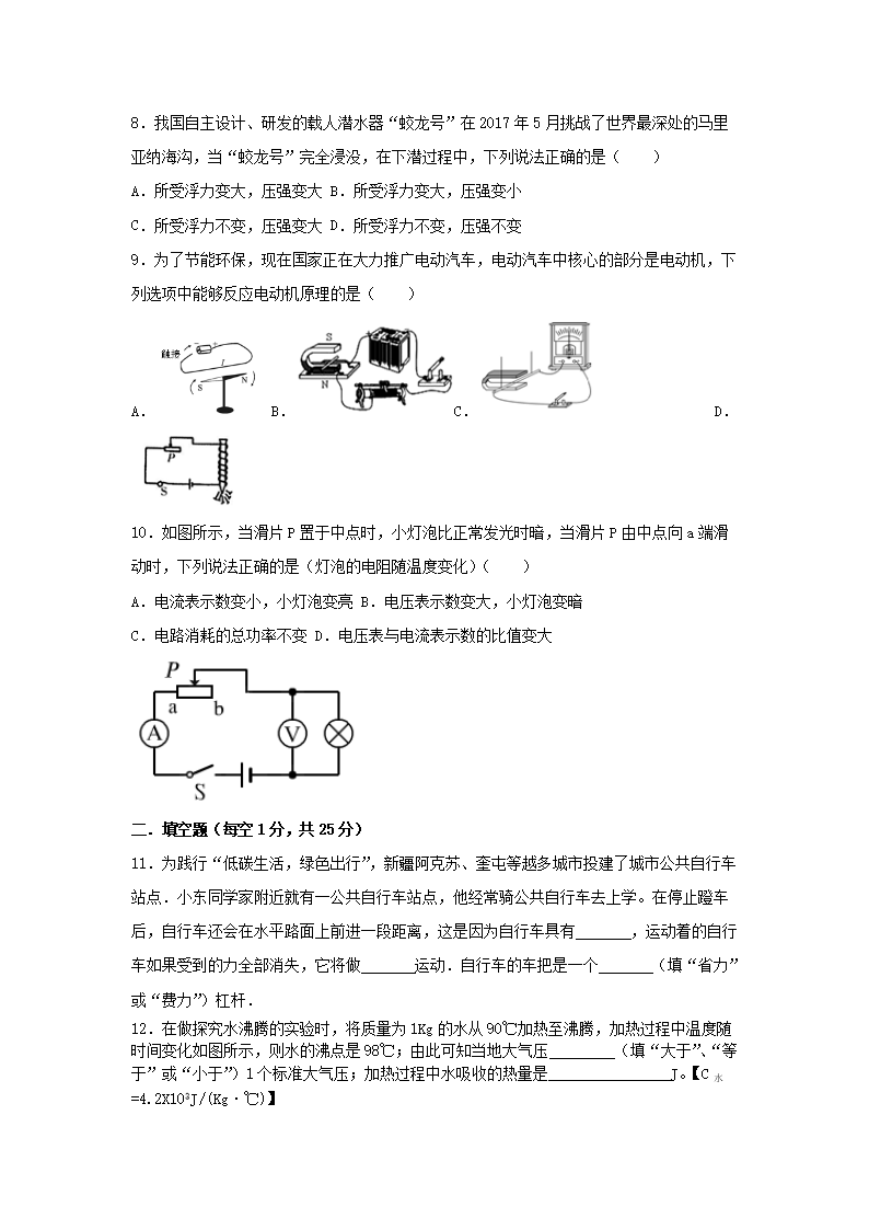 【文档名称】 2017年新疆兵团中考物理真题及答案(Word版).doc