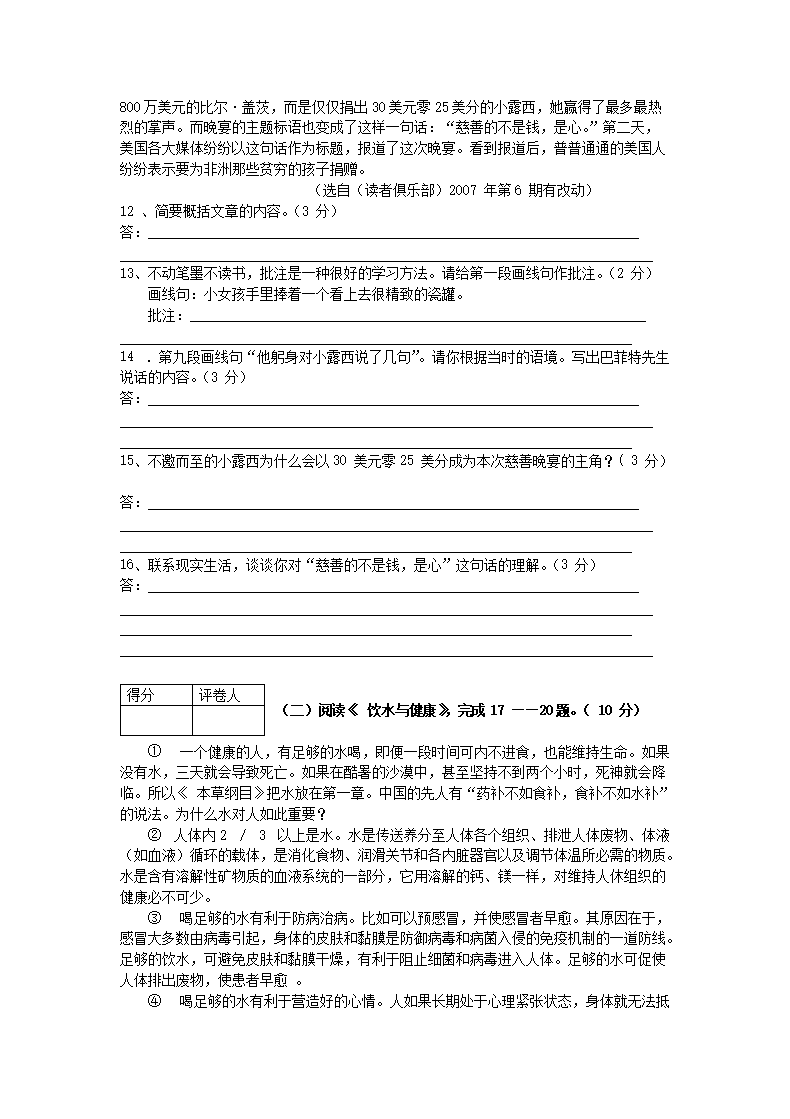 【文档预览】 无忧考网整理发布2008年内蒙古呼伦贝尔中考语文真题及答案(Word版),前五页预览如下: