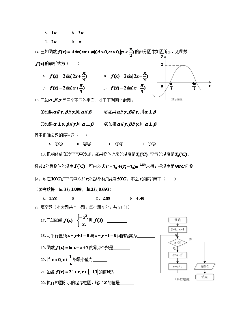 【文档名称】 2014年河南普通高中会考数学真题(Word版).doc