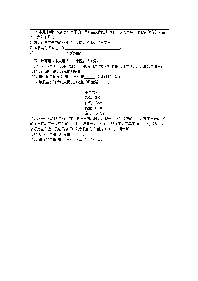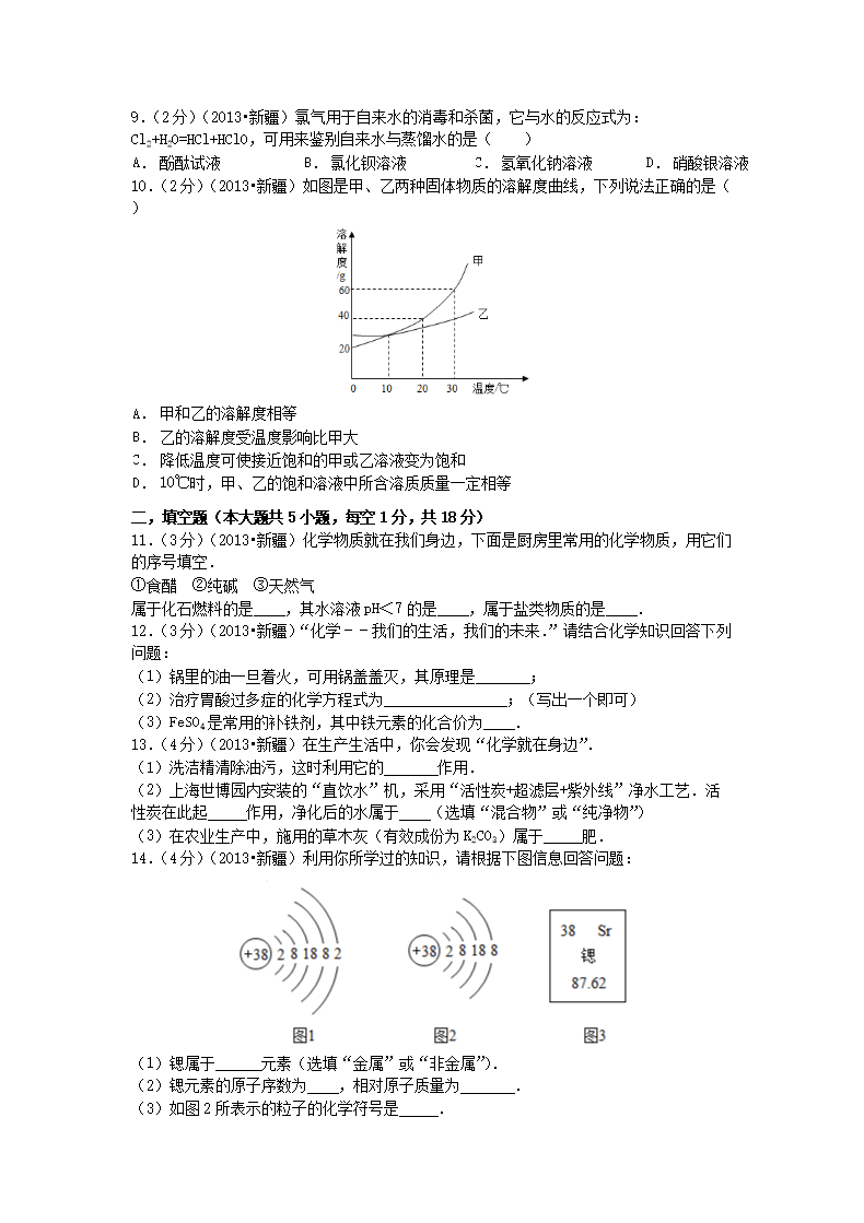 【文档名称】 2013年新疆兵团中考化学真题及答案(Word版).doc
