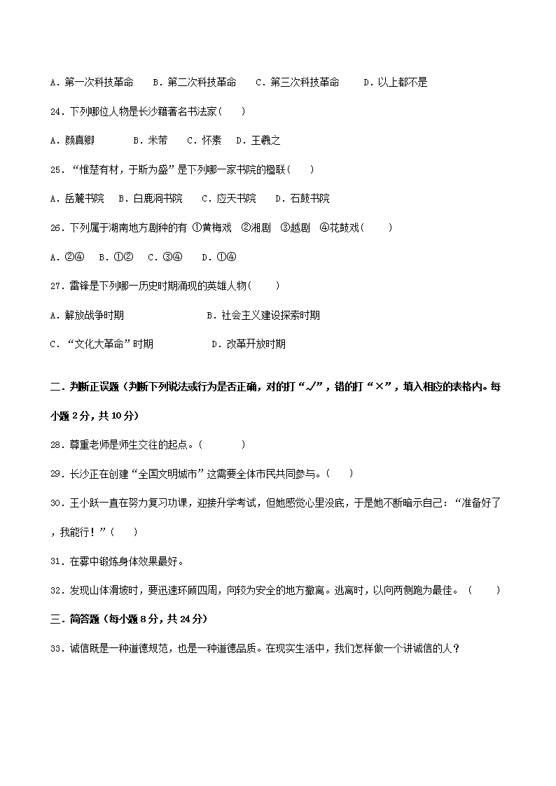 【文档名称】 2008年湖南省长沙市中考历史真题及答案(Word版).doc