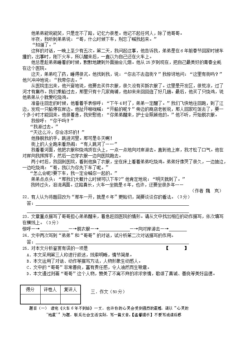 【文档名称】 2008年湖南省长沙市中考语文真题及答案(Word版).doc
