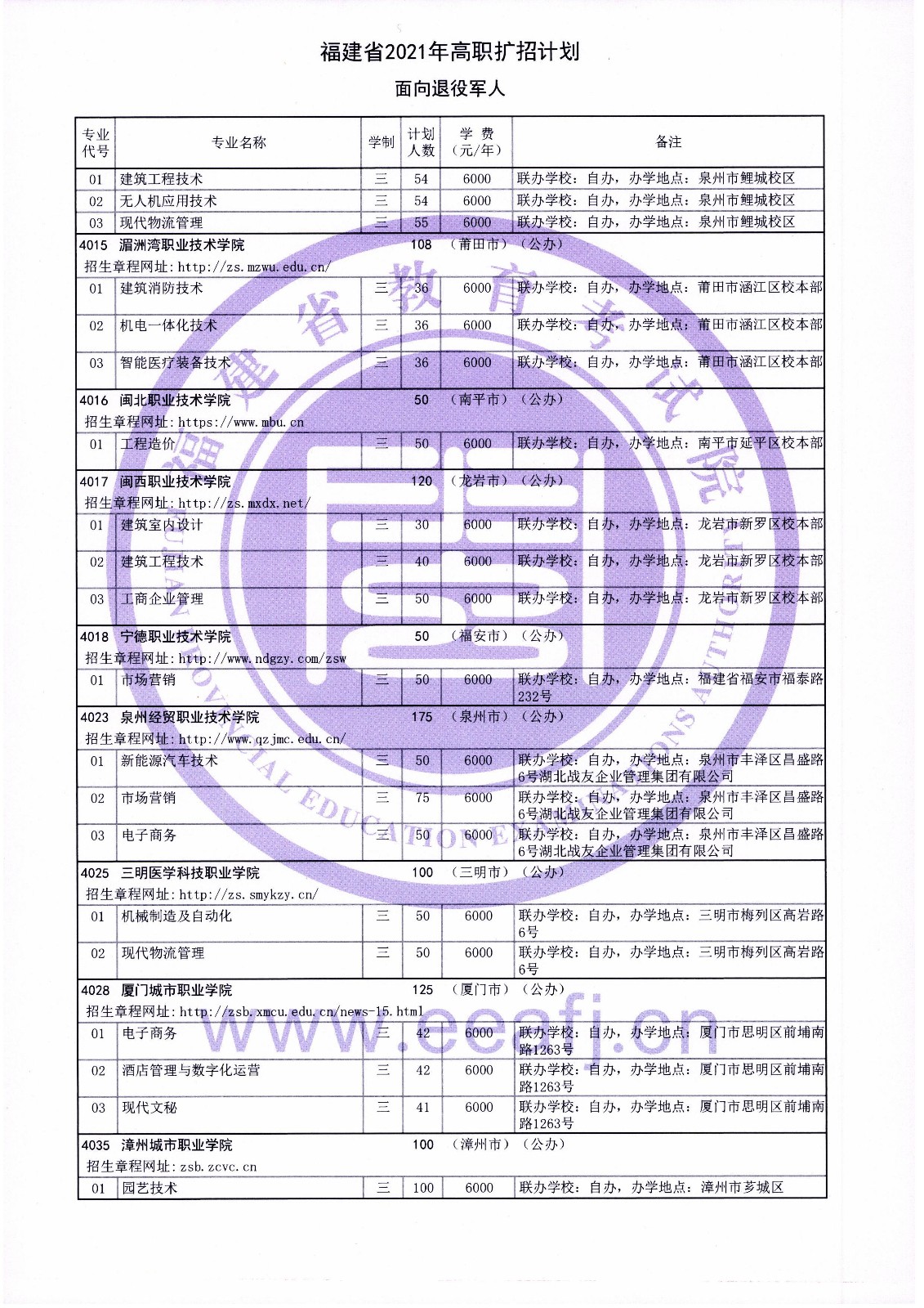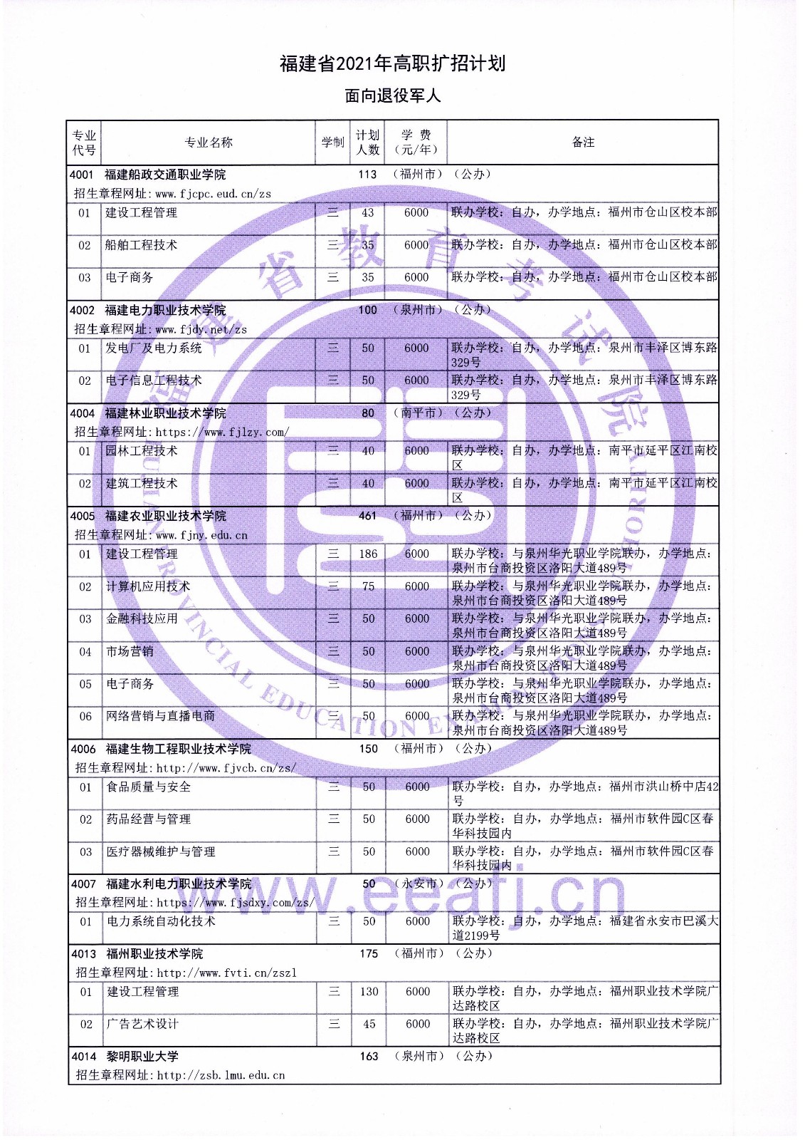 忧考网从福建省教育考试院了解到,2021年福建省高职扩招专项考试招生计划公布,具体如下: