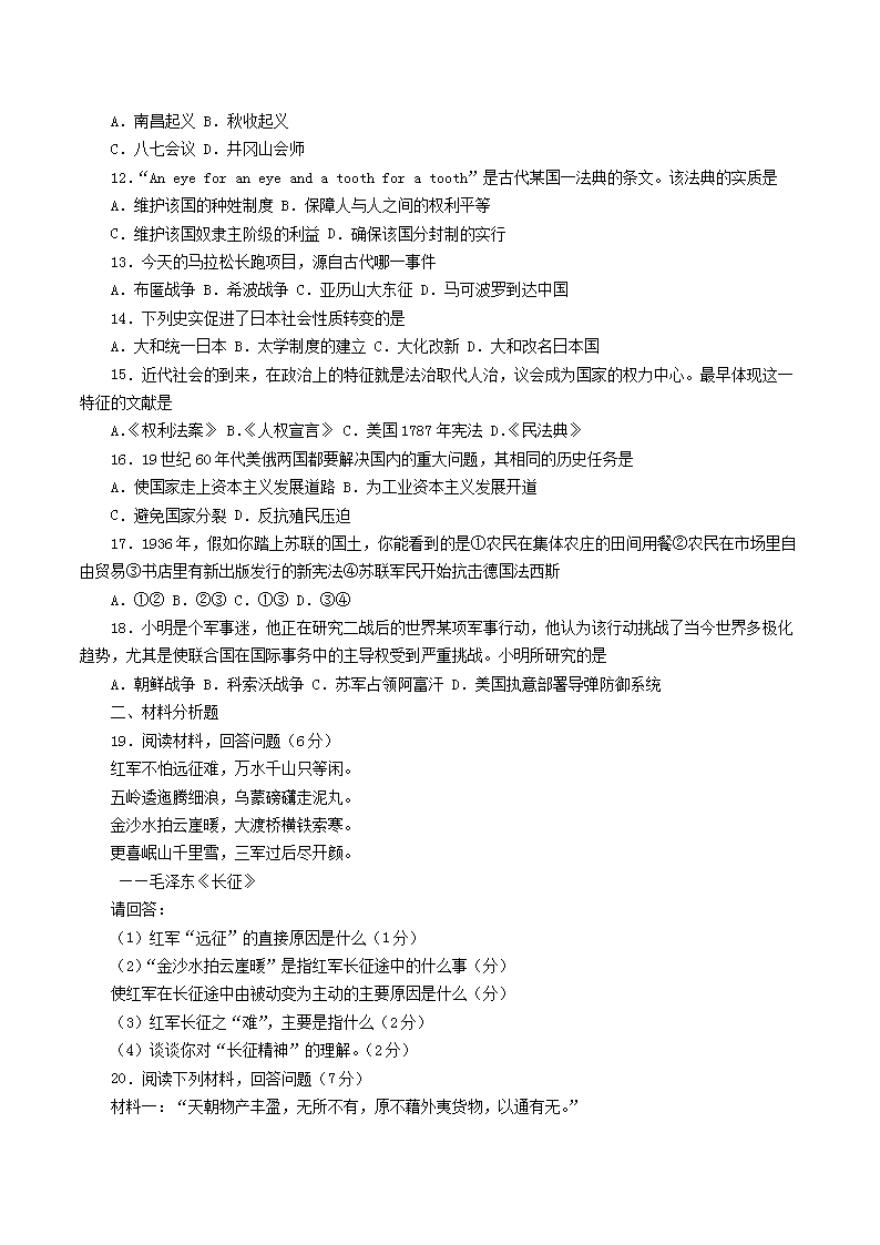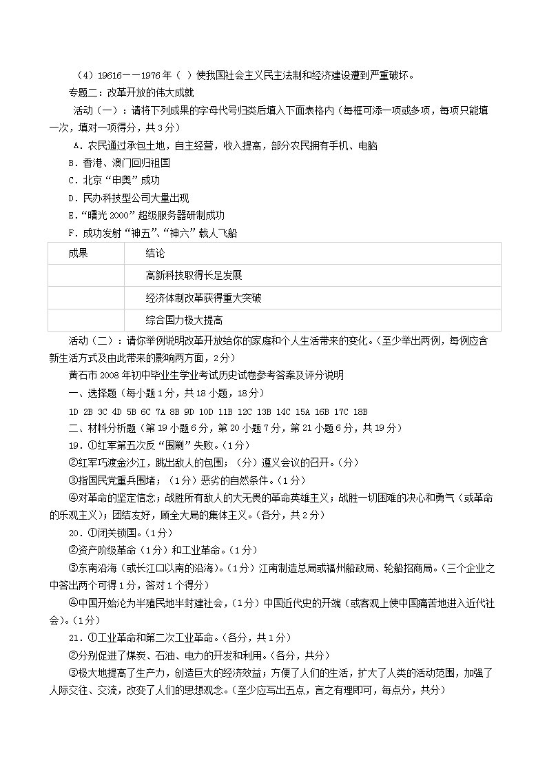 【文档名称】 2008年湖北省黄石市中考历史真题及答案(Word版).doc