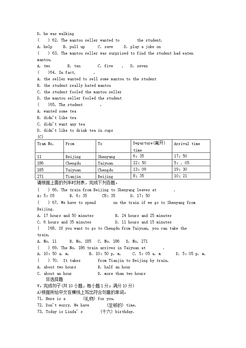 【文档名称】 2011年山西省朔州中考英语真题及答案(Word版).doc