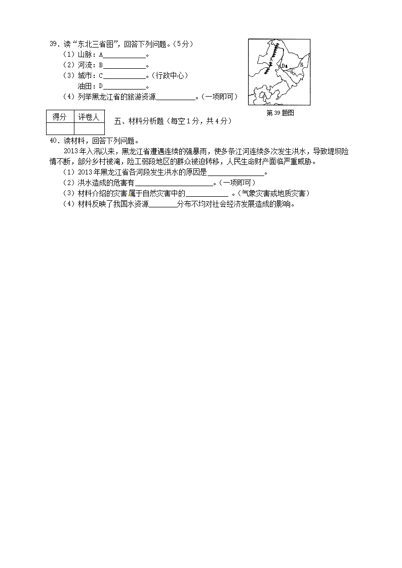 【文档名称】 2014年黑龙江双鸭山中考地理真题及答案(Word版).doc