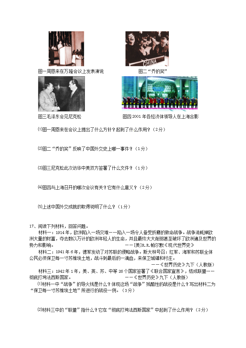 【文档预览】 无忧考网整理发布2011年吉林通化中考历史真题及答案(Word版),前五页预览如下: