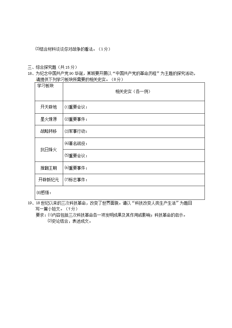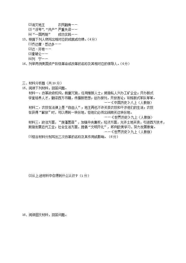 【文档名称】 2011年吉林通化中考历史真题及答案(Word版).doc