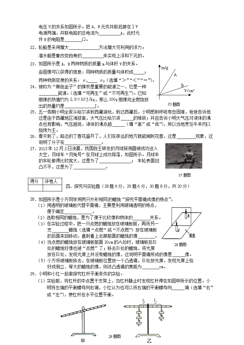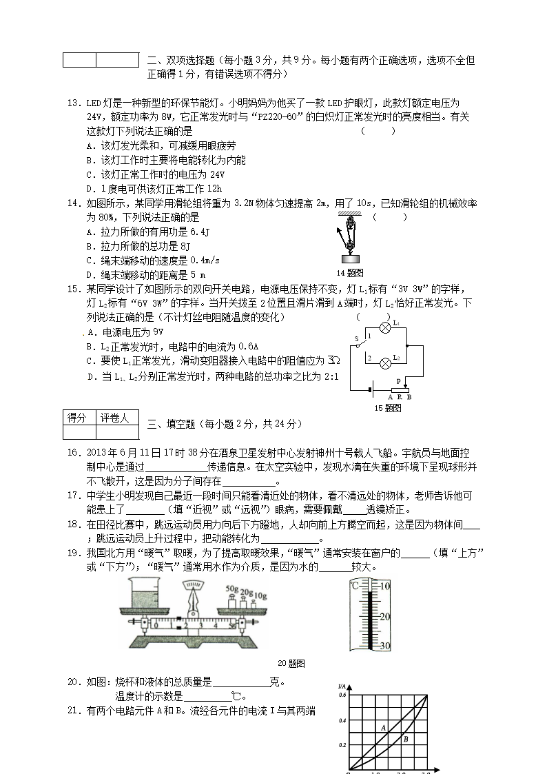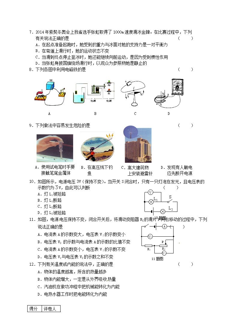【文档名称】 2014年黑龙江双鸭山中考物理真题及答案(Word版).doc