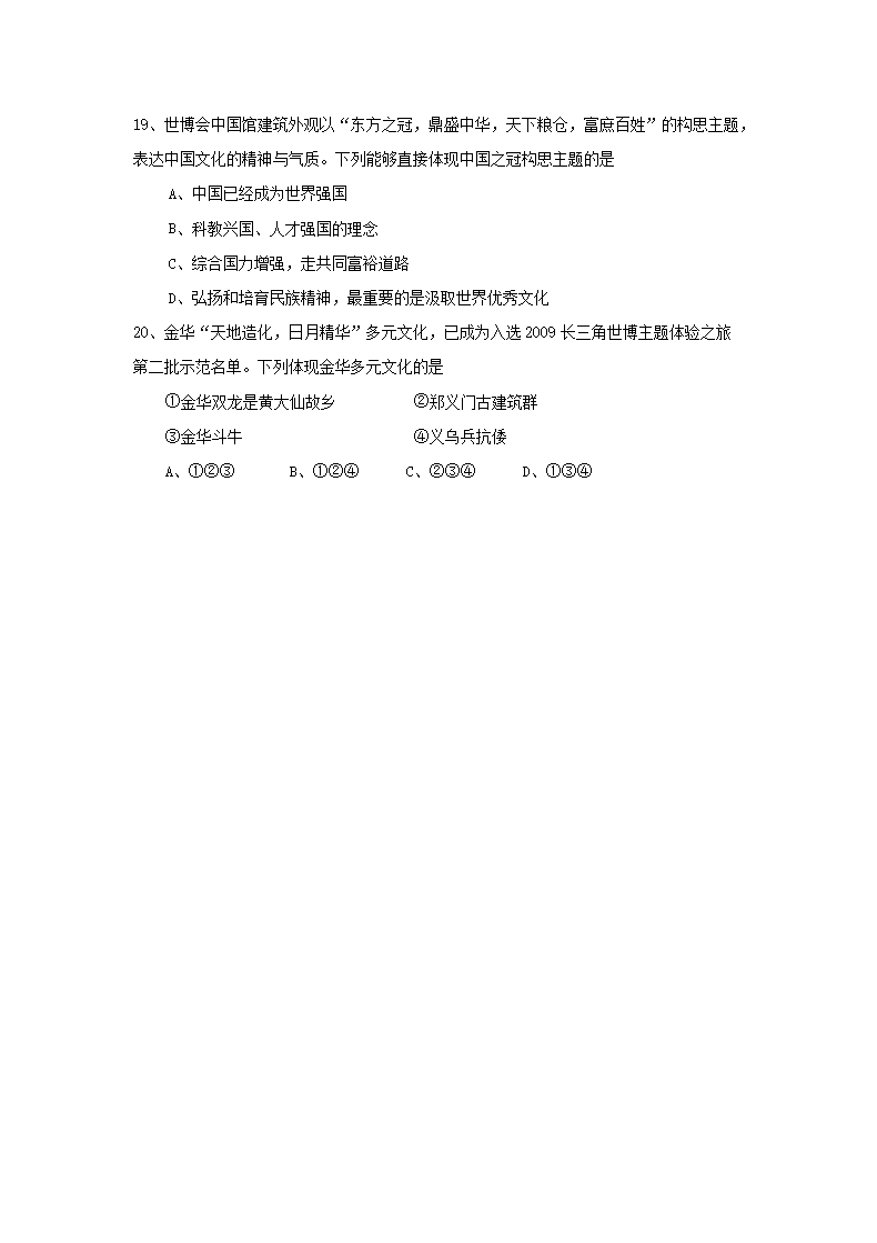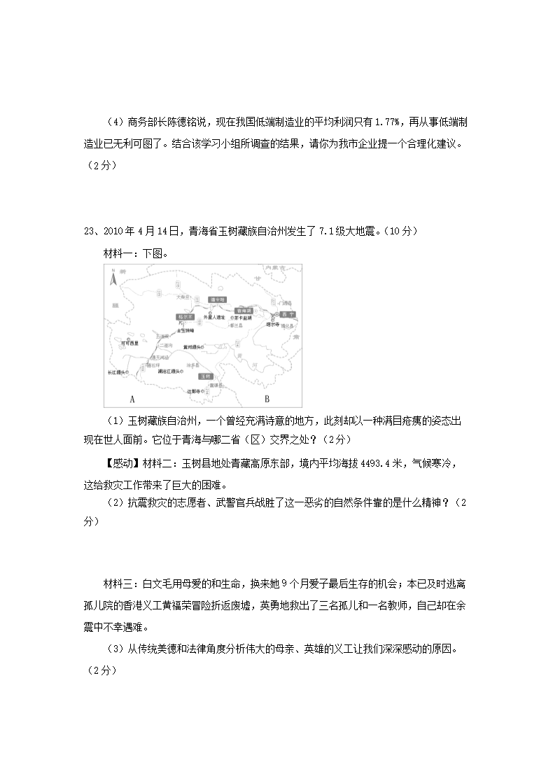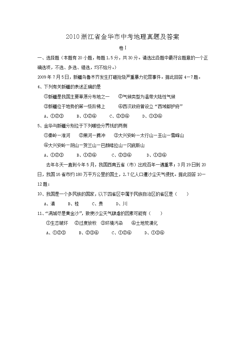 【文档预览】 无忧考网整理发布2010浙江省金华市中考地理真题及答案(Word版),前五页预览如下: