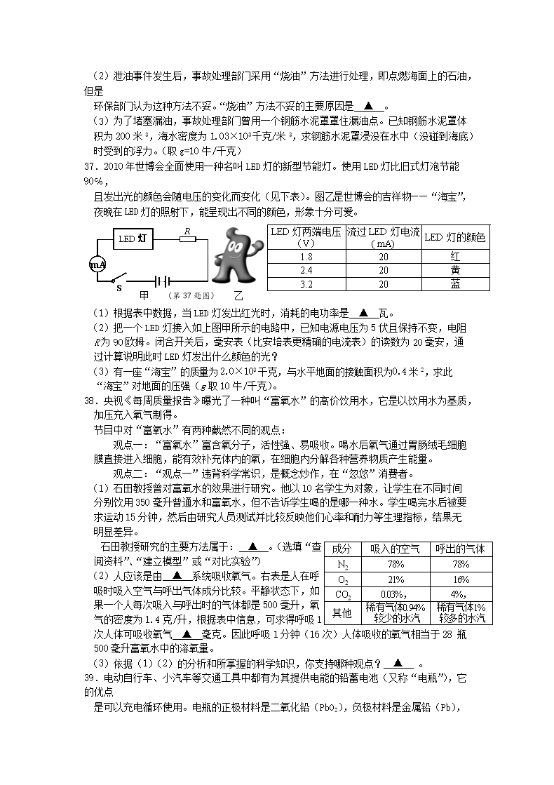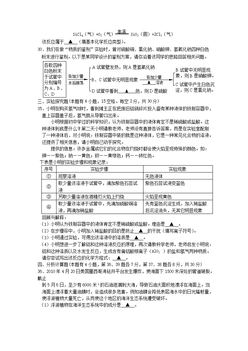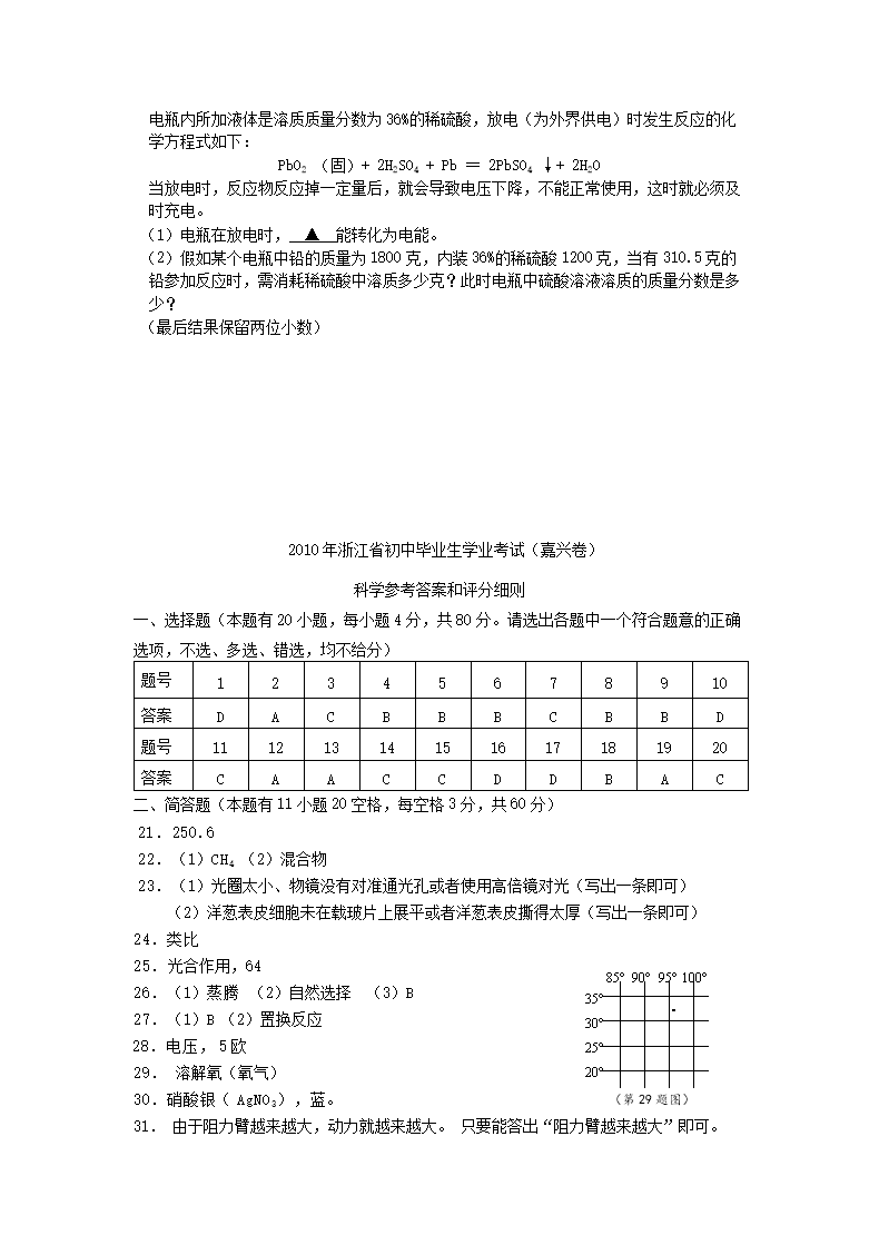 【文档名称】 2010浙江省嘉兴市中考化学真题及答案(Word版).doc