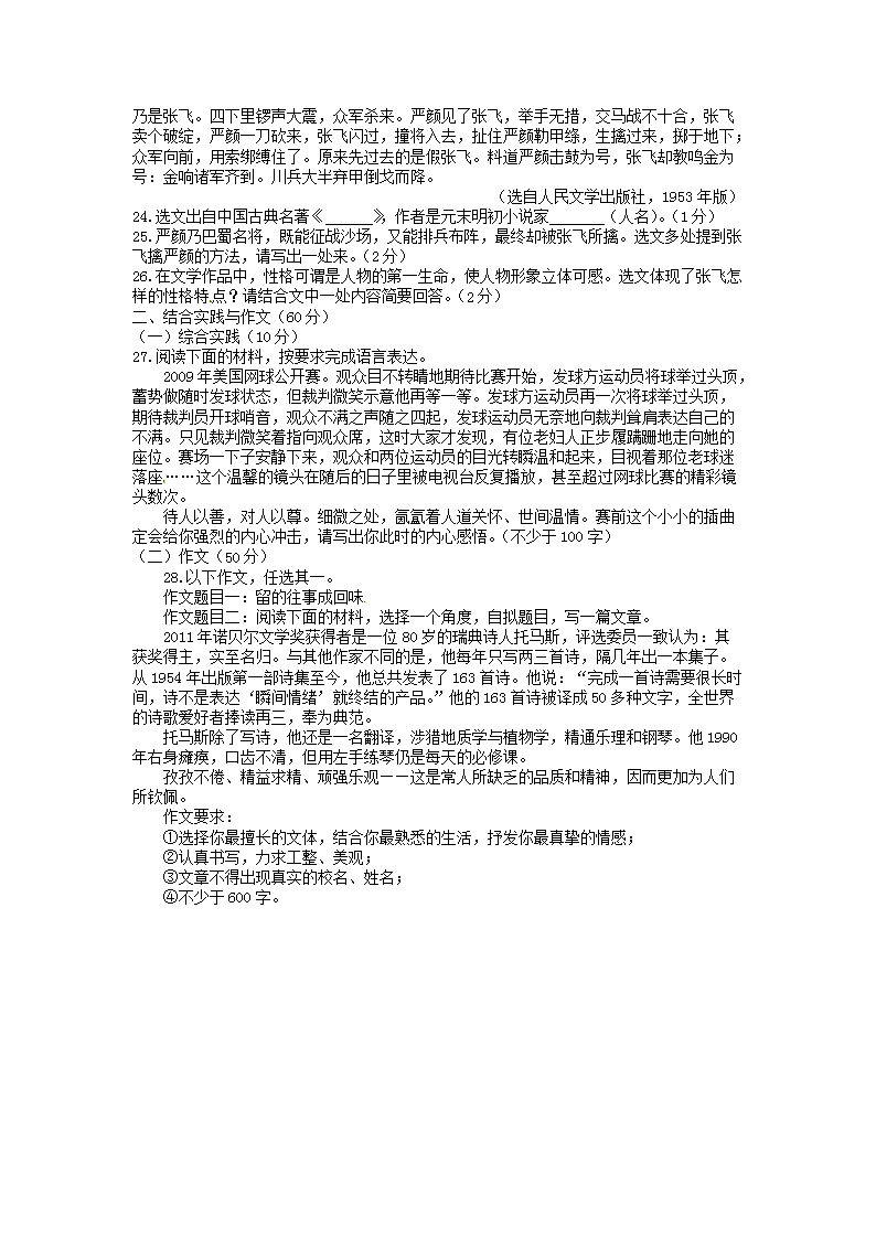 【文档名称】 2012年吉林延边中考语文真题及答案(Word版).doc