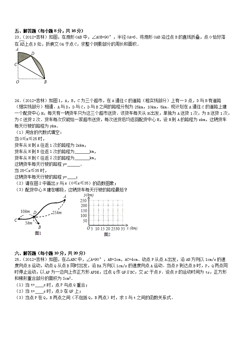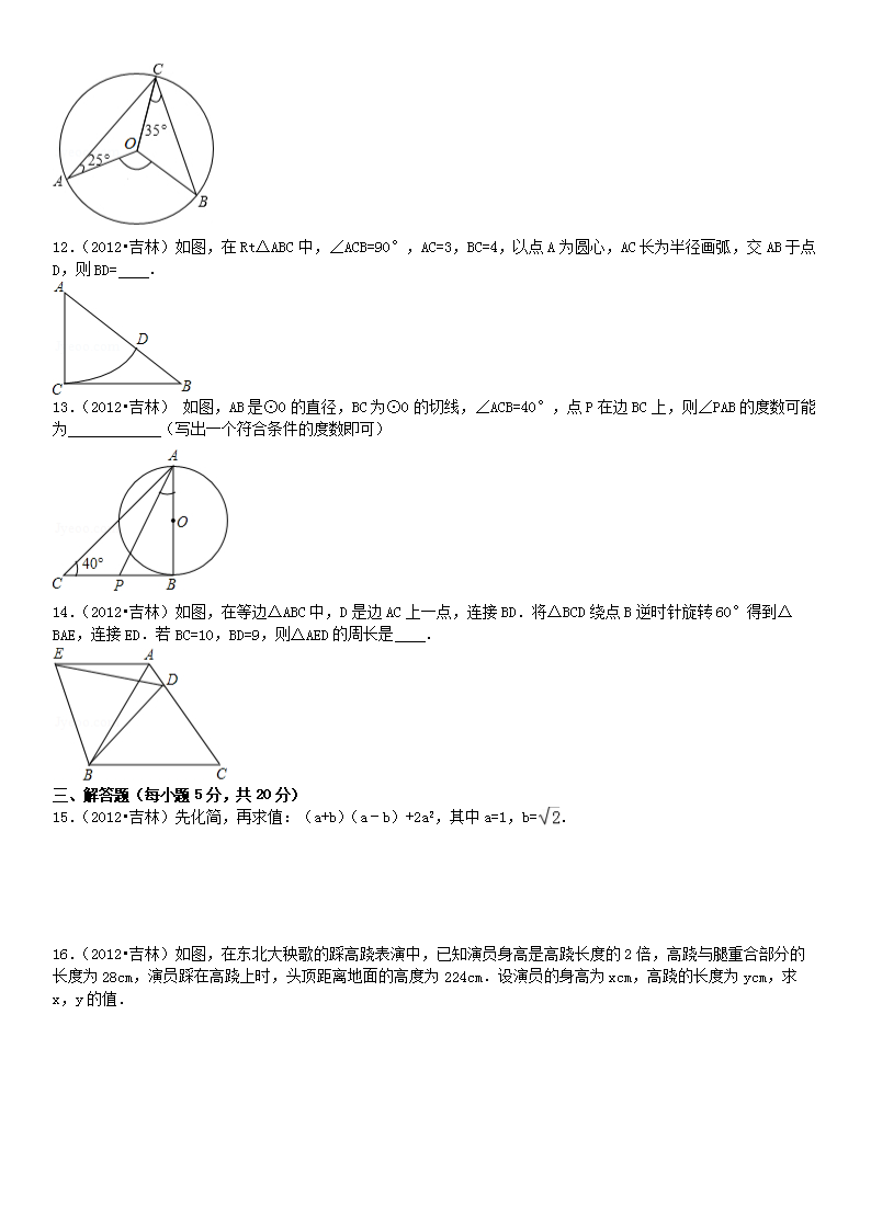 【文档名称】 2012年吉林白山中考数学真题及答案(Word版).doc