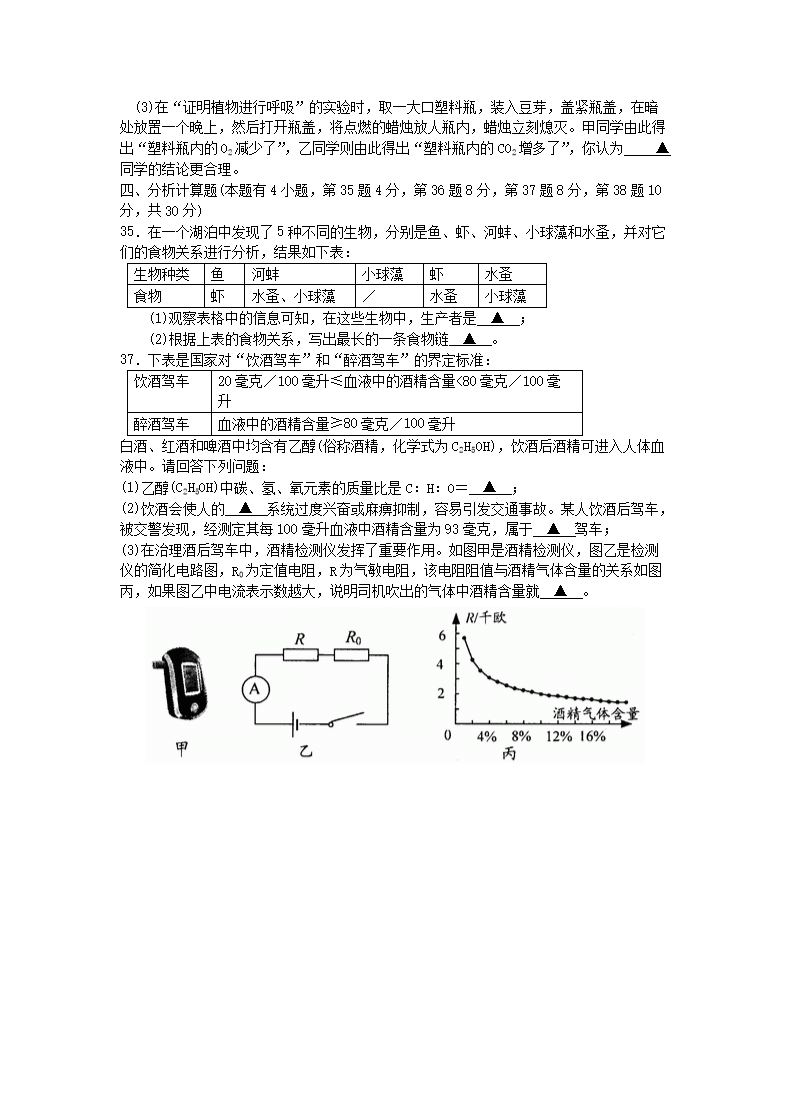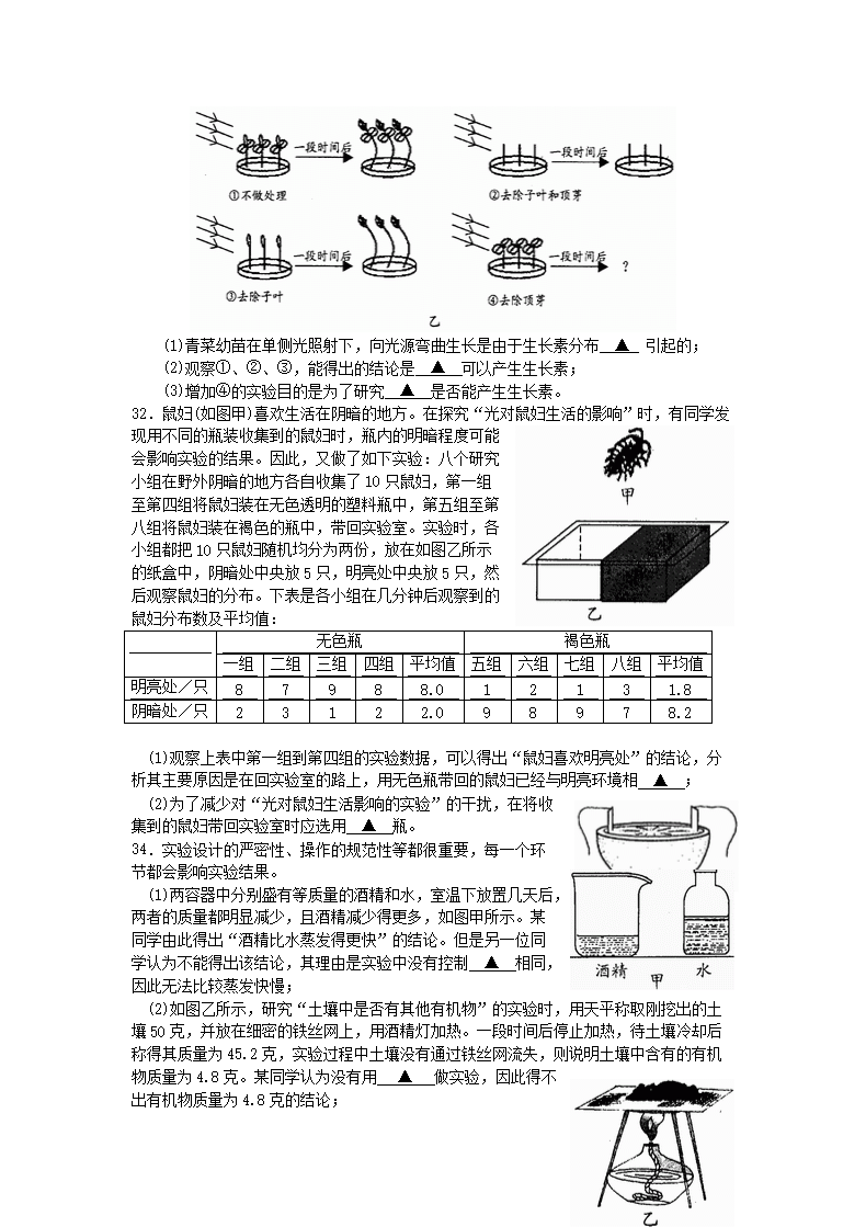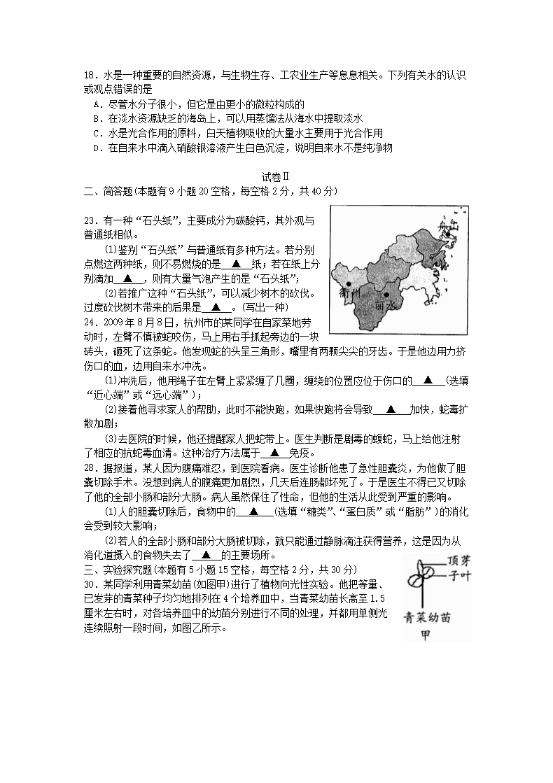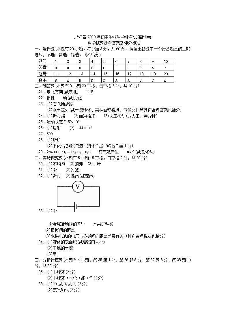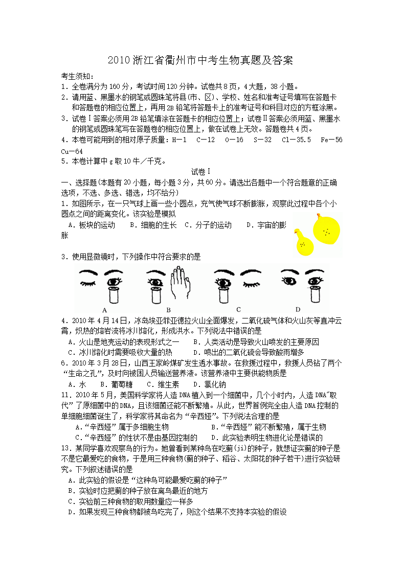 【文档名称】 2010浙江省衢州市中考生物真题及答案(Word版).doc