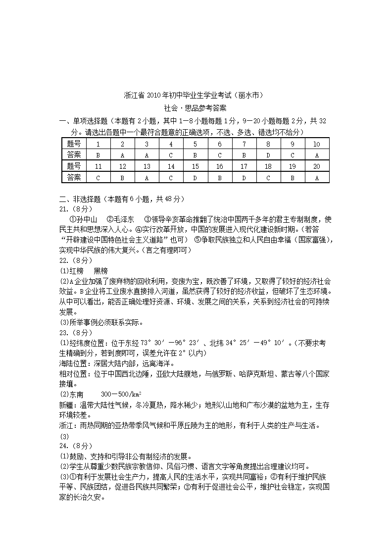 【文档名称】 2010浙江省丽水市中考地理真题及答案(Word版).doc