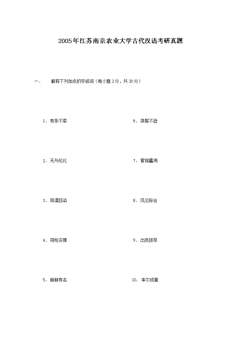 【文档名称】 2005年江苏南京农业大学古代汉语考研真题(Word版).doc