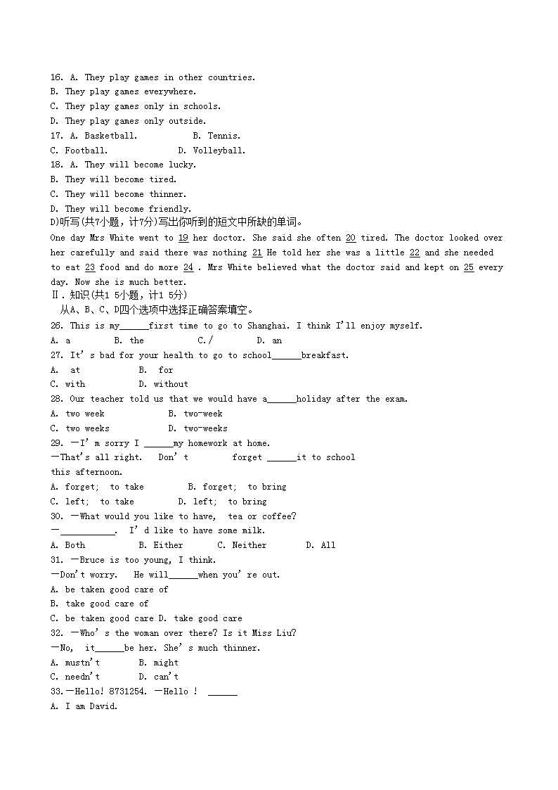 【文档名称】 2005年湖南省衡阳市中考英语真题及答案(Word版).doc