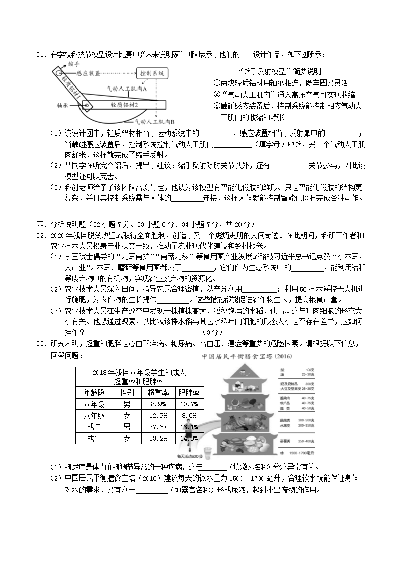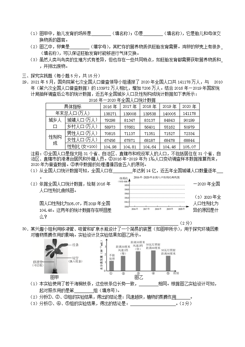 【文档名称】 2021年湖南省长沙市中考生物真题及答案(Word版).doc