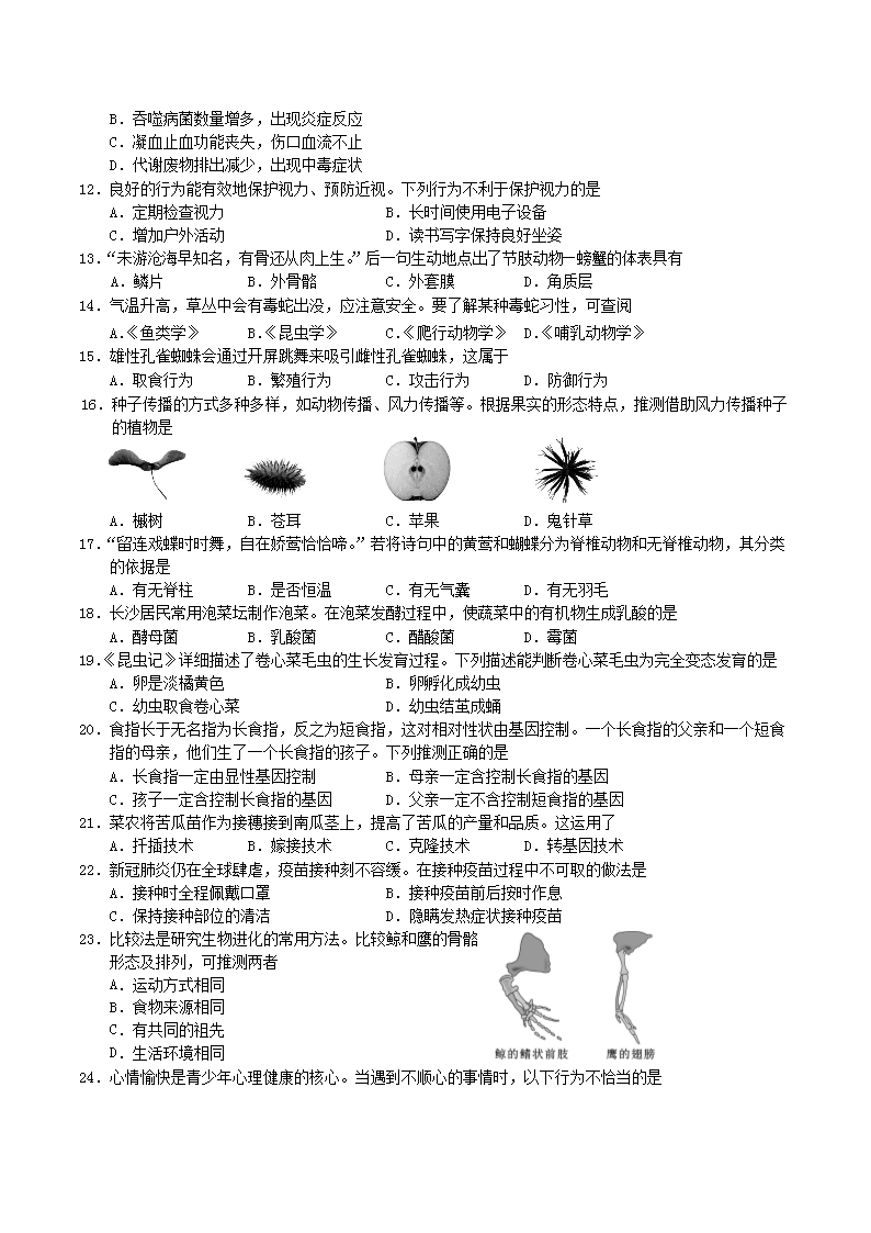【文档预览】 无忧考网整理发布2021年湖南省长沙市中考生物真题及答案(Word版),前五页预览如下: